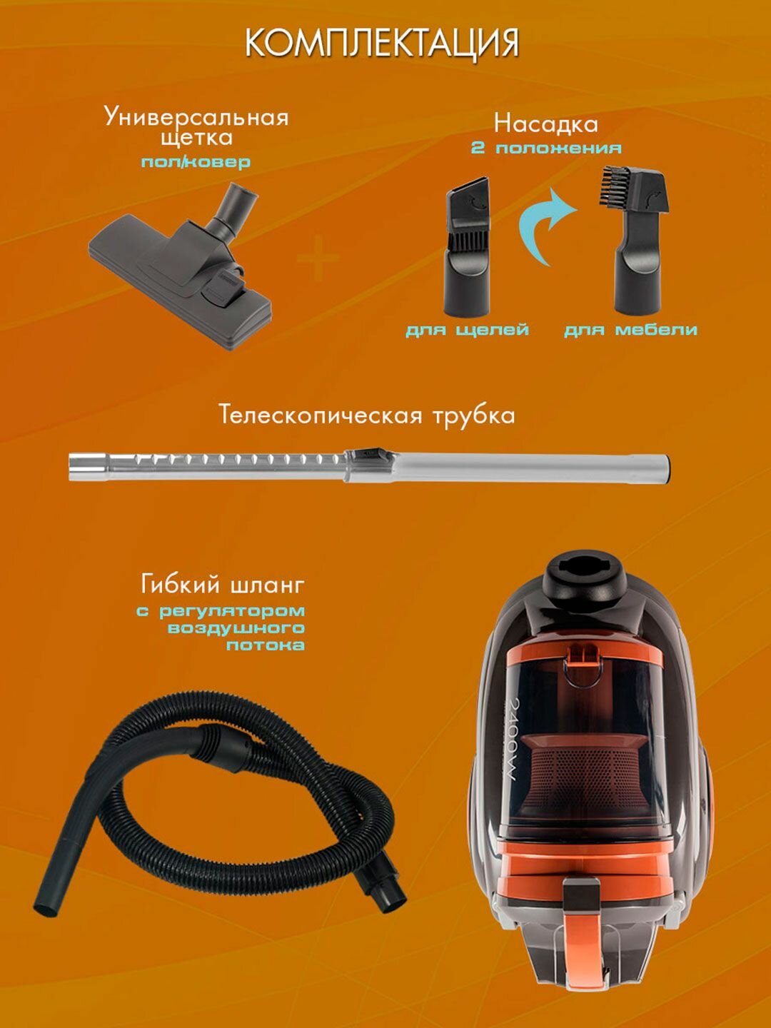 Этот пылесос отличается высокой мощностью всасывания, что позволяет ему эффективно справляться с загрязнениями на различных поверхностях – от ковров до твердых полов. С ним вы быстро и легко добьетесь идеальной чистоты в каждом уголке вашего дома.