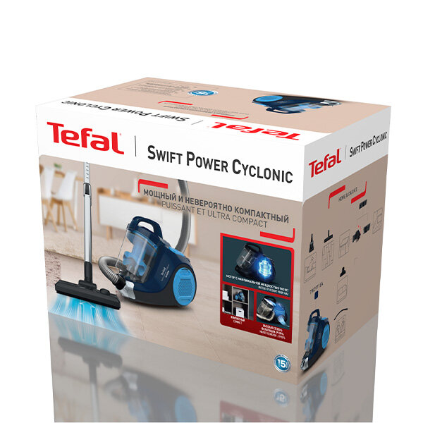 Выбирая пылесос Tefal Swift Power Cyclonic, вы выбираете надежность, мощность и удобство в использовании. Наслаждайтесь безупречной чистотой в вашем доме с минимальными усилиями!