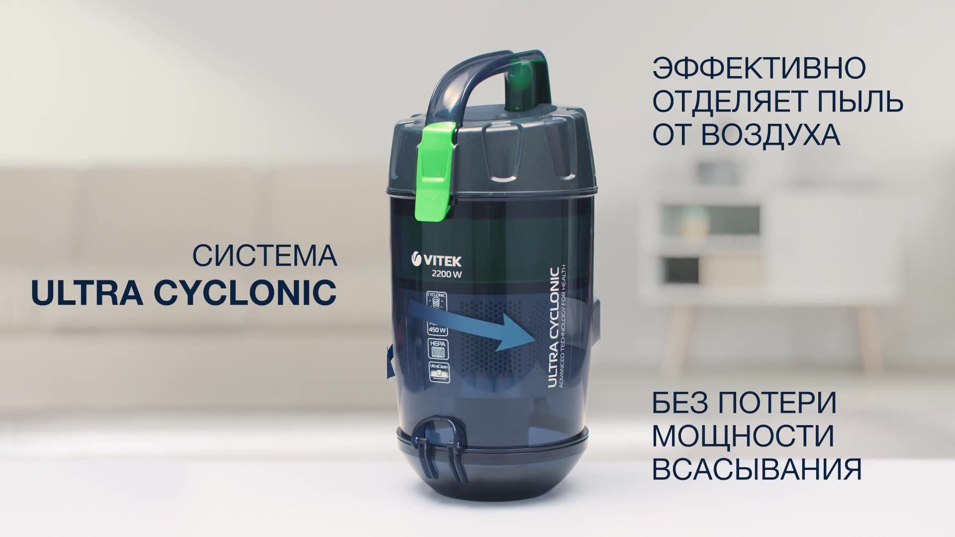 Благодаря системе циклон, пылесос Vitek VT-8130 обеспечивает высокую силу всасывания на протяжении всей уборки. Он эффективно справляется с пылью, грязью и шерстью домашних животных на различных поверхностях – от ковров до твердых полов.