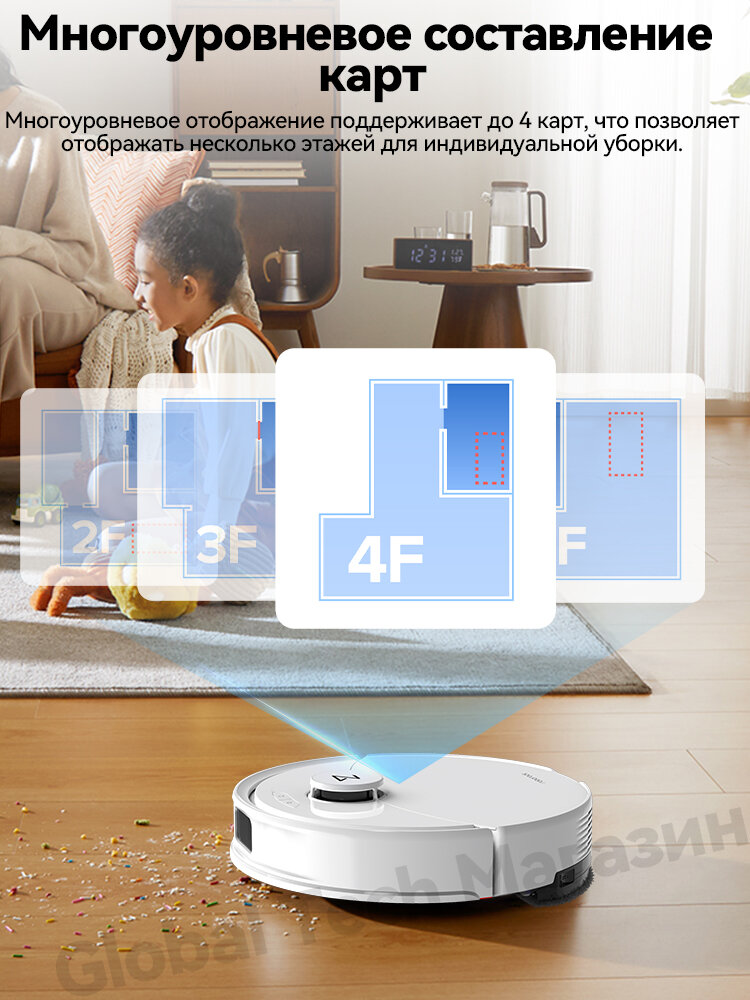 Современная навигационная система позволяет роботу-пылесосу Q8 Max Pro RU тщательно сканировать пространство, строить точные карты вашего дома и планировать оптимальные маршруты уборки. Он легко обходит препятствия, избегает падений и эффективно очищает каждый уголок, даже в труднодоступных местах.