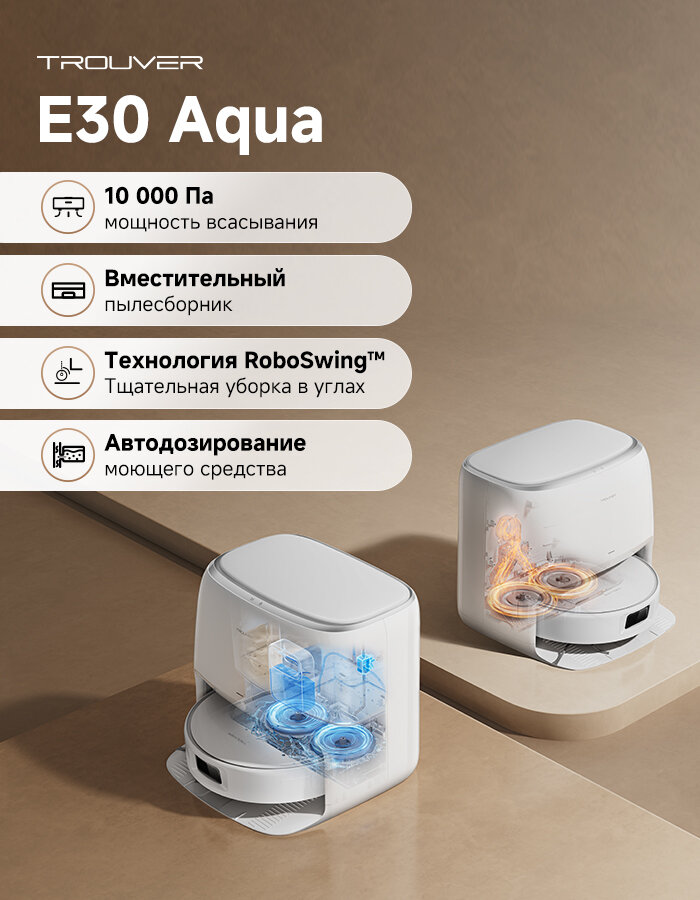 Инвестируйте в чистоту и комфорт своего дома с роботом-пылесосом Trouver E30 Aqua S. Сделайте заказ прямо сейчас и почувствуйте разницу!