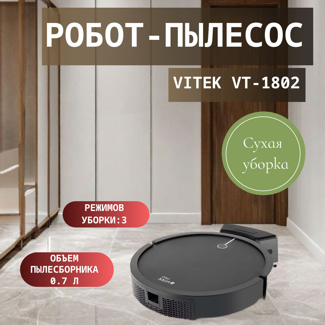 С роботом-пылесосом VITEK VT-1802 вы сможете наслаждаться чистотой и порядком в вашем доме, не тратя на это много времени и сил. Это отличный выбор для тех, кто ценит свое время и стремится к комфорту! Закажите VITEK VT-1802 прямо сейчас и забудьте о проблемах с уборкой!