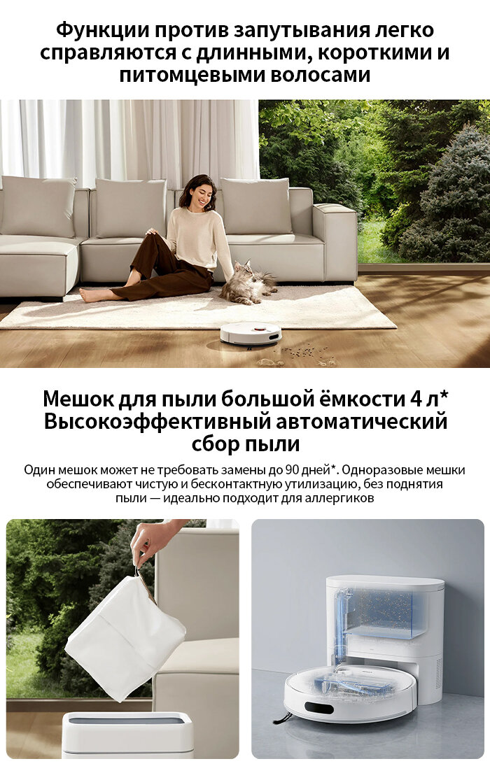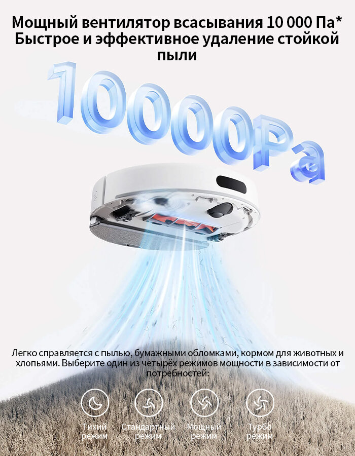 Продуманный дизайн и интеллектуальные датчики позволяют ему легко ориентироваться в пространстве, обходя препятствия и избегая падений. Он эффективно убирает вдоль стен, в углах и под мебелью, обеспечивая полноценную уборку всего дома.