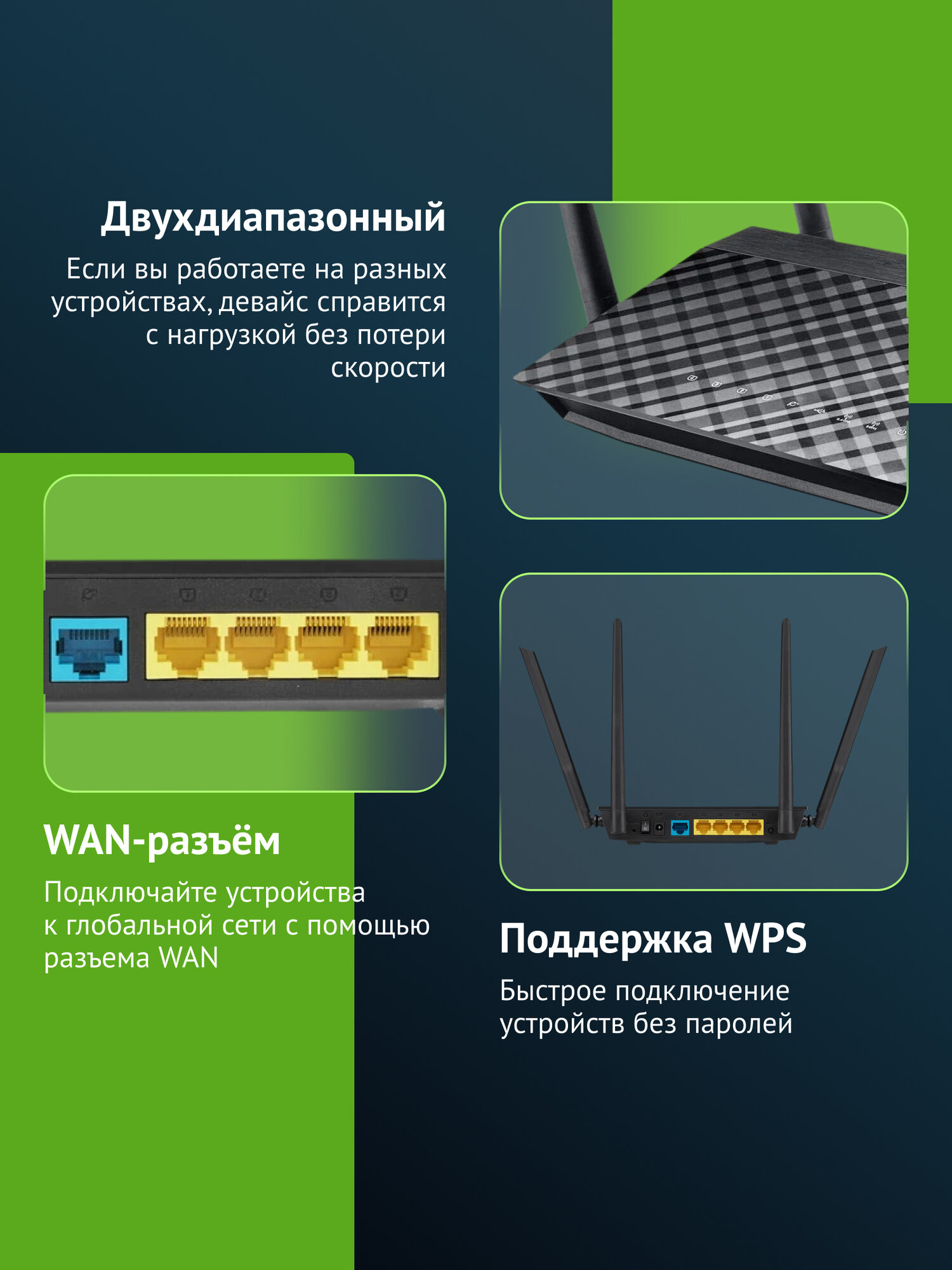 Наслаждайтесь высокой скоростью и надежностью интернет-соединения с ASUS RT-AC1200! Идеальный выбор для тех, кто ценит качество и стабильность.