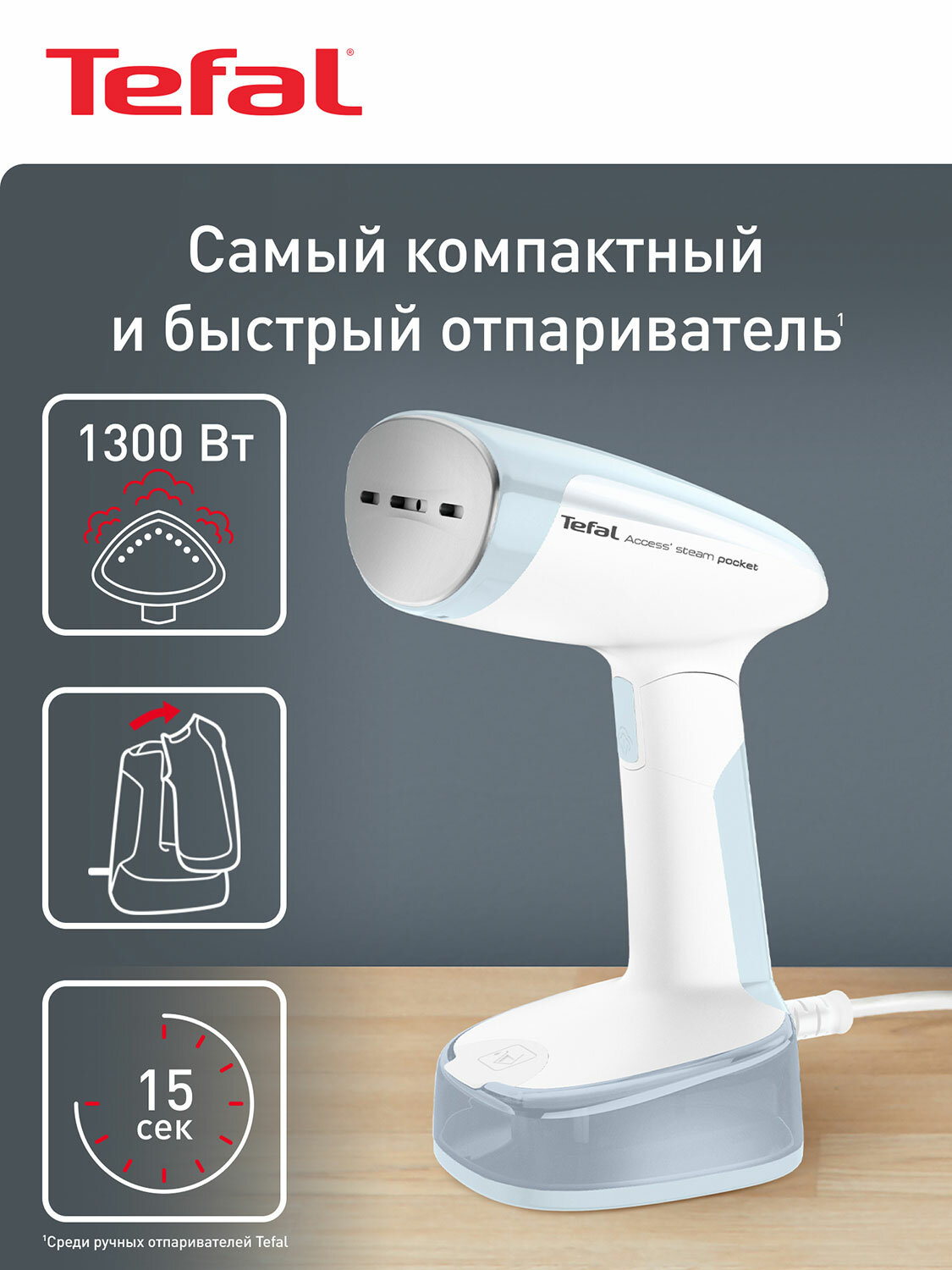 Представляем вашему вниманию ручной отпариватель Tefal Access Steam Pocket DT3041E1, который станет незаменимым помощником в уходе за вашей одеждой. Забудьте о громоздких утюгах и гладильных досках – с этим компактным и мощным прибором вы сможете быстро и эффективно разгладить складки и придать своим вещам свежий и ухоженный вид.