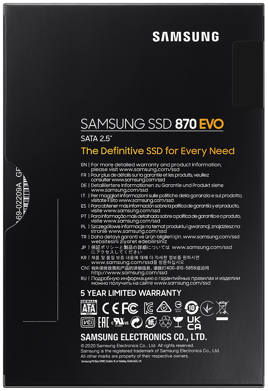Простая установка и совместимость с большинством современных устройств делают Samsung 870 EVO 2 TB отличным выбором для пользователей любого уровня подготовки. Установите его в свой компьютер или ноутбук и почувствуйте мгновенное улучшение производительности. Переходите на новый уровень скорости и эффективности с Samsung 870 EVO 2 TB!
