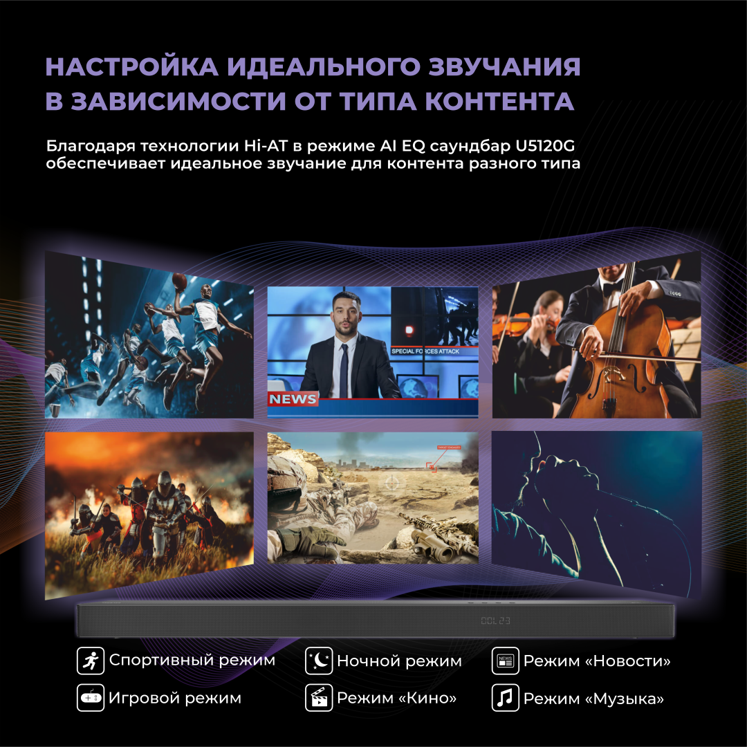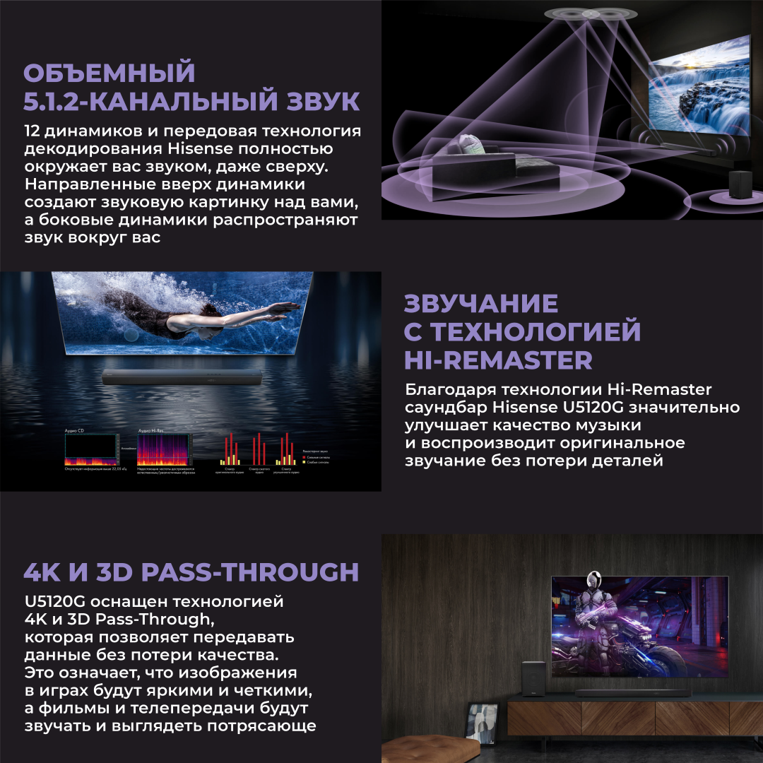 Саундбар Hisense 34U5120G34 – это идеальное решение для тех, кто ценит качественный звук, стильный дизайн и простоту использования. Почувствуйте разницу и поднимите свои впечатления от просмотра фильмов, прослушивания музыки и игр на новый уровень!