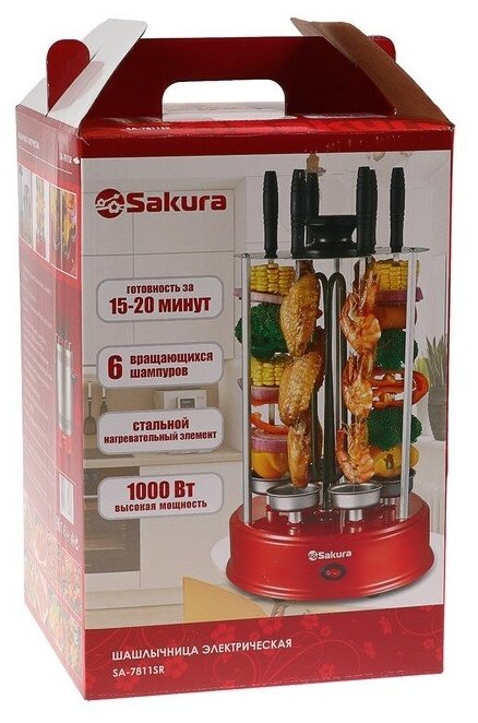 Закажите электрошашлычницу Sakura SA-7811SR прямо сейчас и откройте для себя новые горизонты домашней кулинарии! Ваш шашлык всегда будет идеальным - сочным, ароматным и приготовленным с любовью.