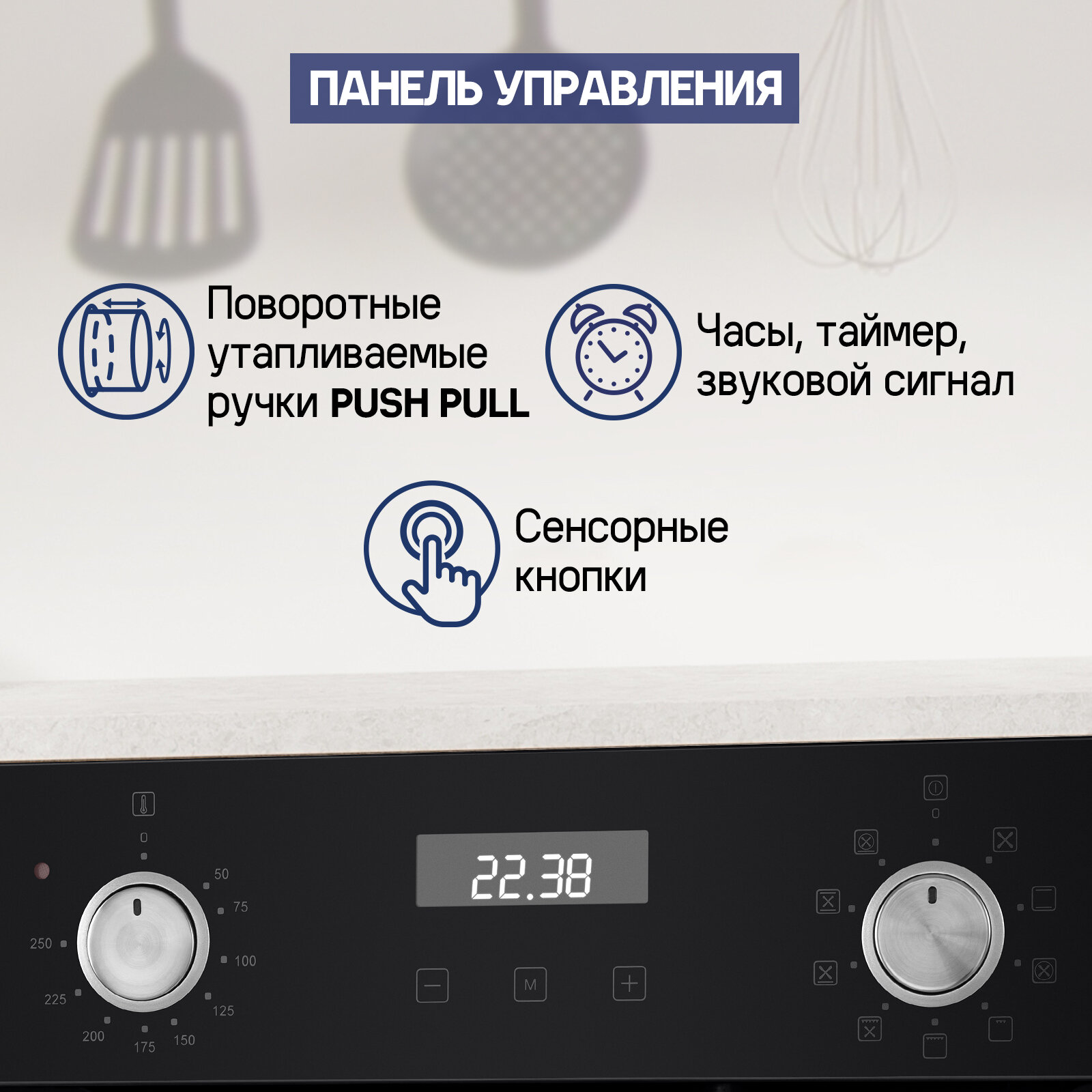 Этот духовой шкаф сочетает в себе продуманный функционал и простое управление. Благодаря различным режимам нагрева, вы сможете идеально приготовить любое блюдо – от сочного мяса до воздушной выпечки. Удобные регуляторы и интуитивно понятный интерфейс позволяют легко настраивать параметры приготовления, добиваясь превосходных результатов каждый раз.