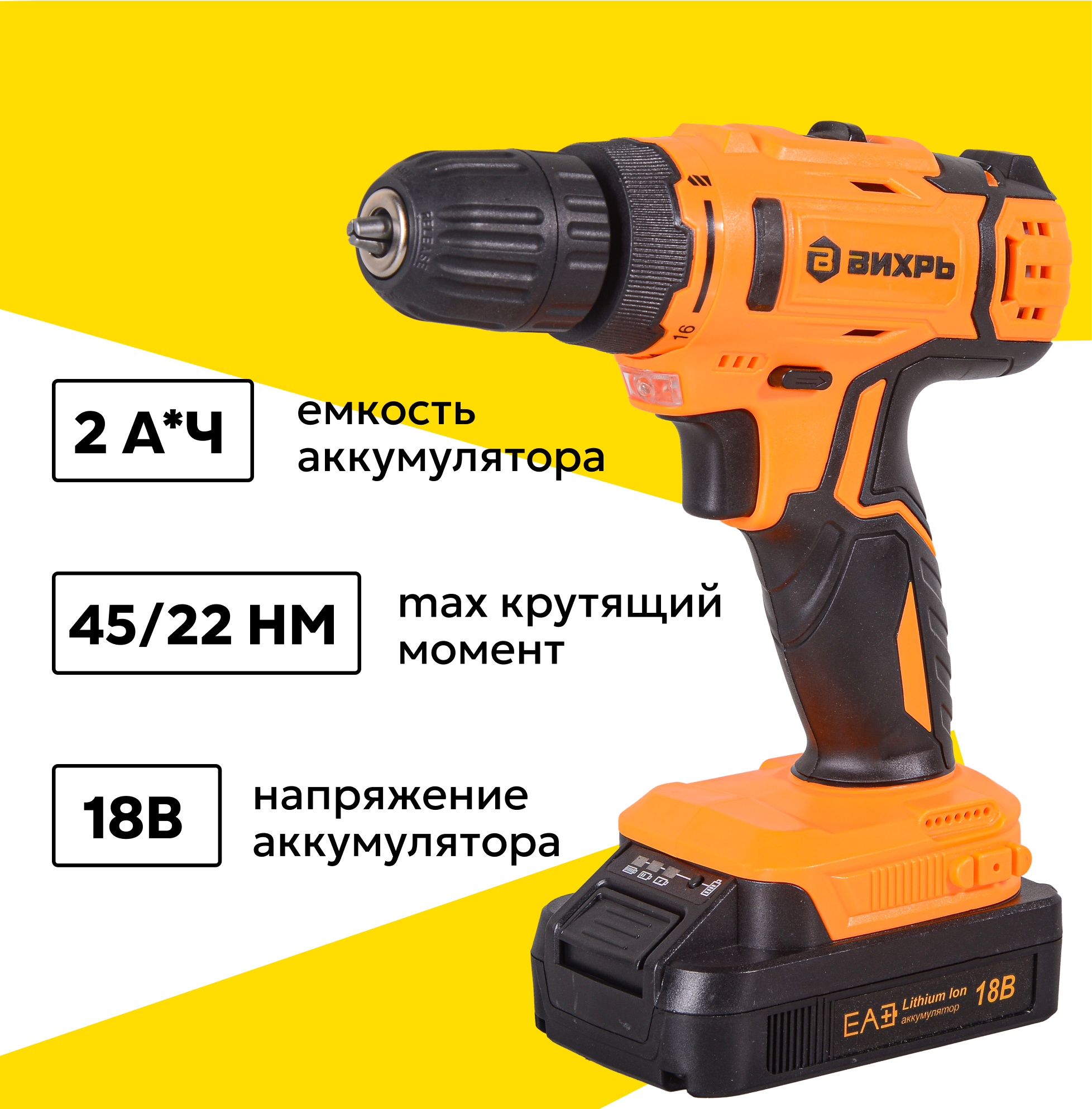 Шуруповерт Вихрь ДА-18Л-2 оснащен всем необходимым для эффективной работы. Регулировка крутящего момента позволяет точно настроить инструмент под конкретную задачу, предотвращая повреждение материалов и обеспечивая оптимальный результат. Надежный аккумулятор обеспечивает длительное время работы без подзарядки, позволяя выполнить большой объем работ за один раз.
