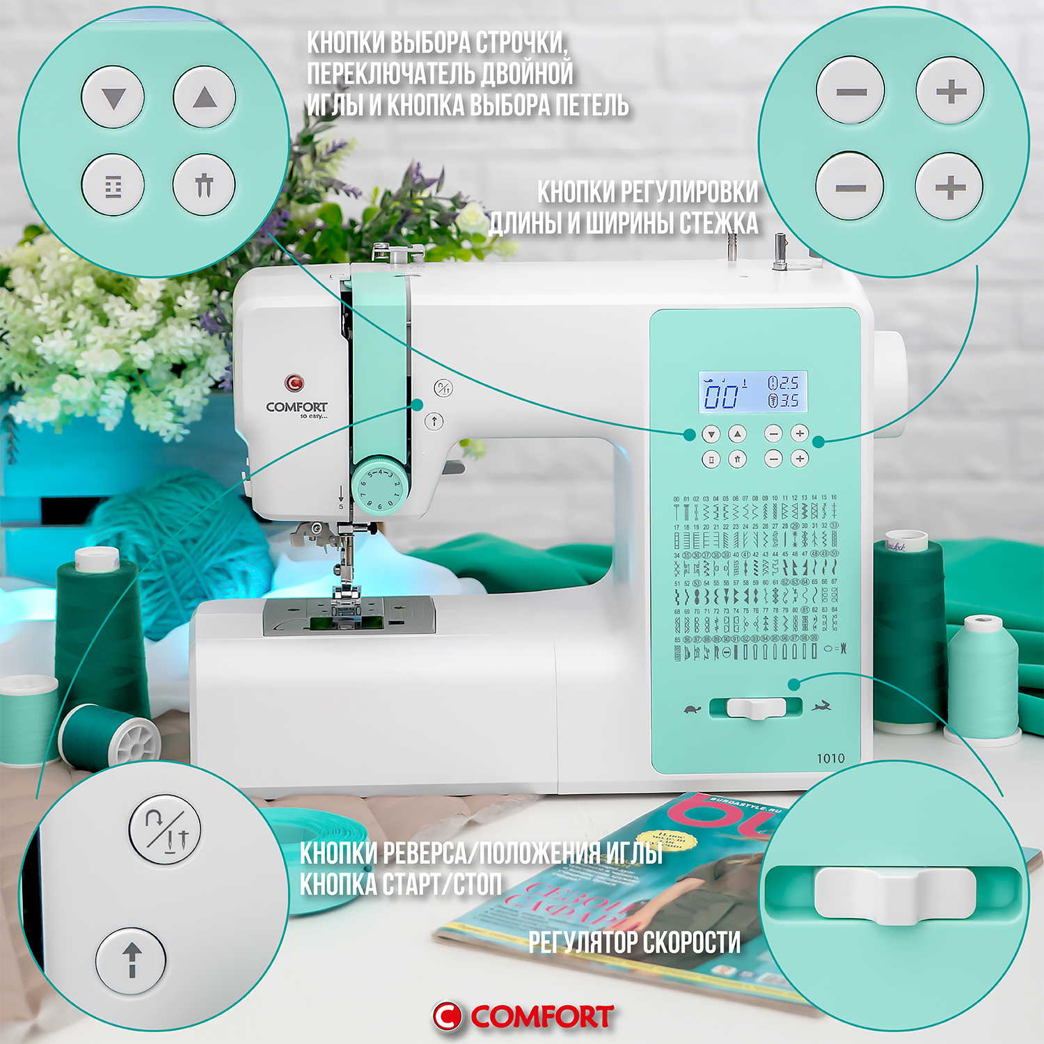 Приобретите швейную машину Comfort 1010 сегодня и откройте для себя безграничные возможности в мире шитья! Творите, экспериментируйте и создавайте шедевры вместе с Comfort 1010!