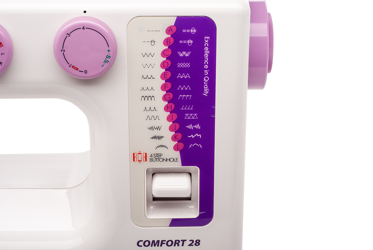 С Comfort 28 вы сможете воплотить в жизнь любые ваши швейные проекты – от простого ремонта одежды до создания уникальных предметов интерьера. Продуманный дизайн и интуитивно понятное управление позволяют быстро освоить все основные функции машины, а надежная конструкция гарантирует долгий срок службы.