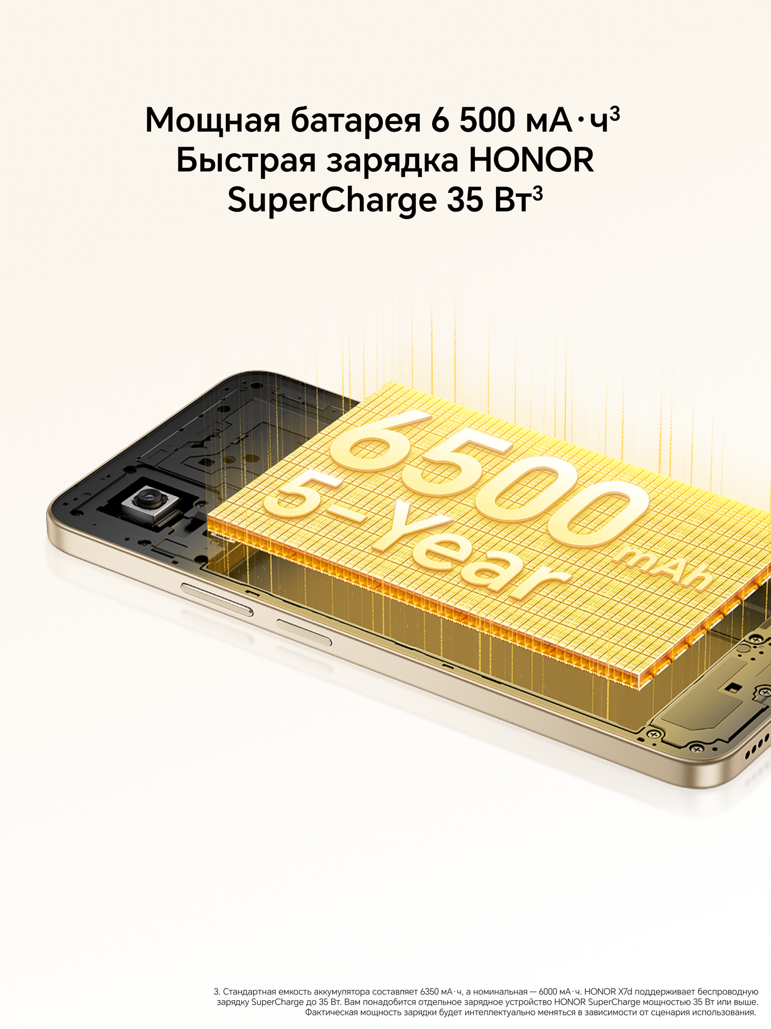 Благодаря емкому аккумулятору, вы сможете оставаться на связи в течение всего дня. Забудьте о постоянной необходимости подзарядки и наслаждайтесь свободой передвижения. Honor X7D – это надежный компаньон для активного образа жизни.