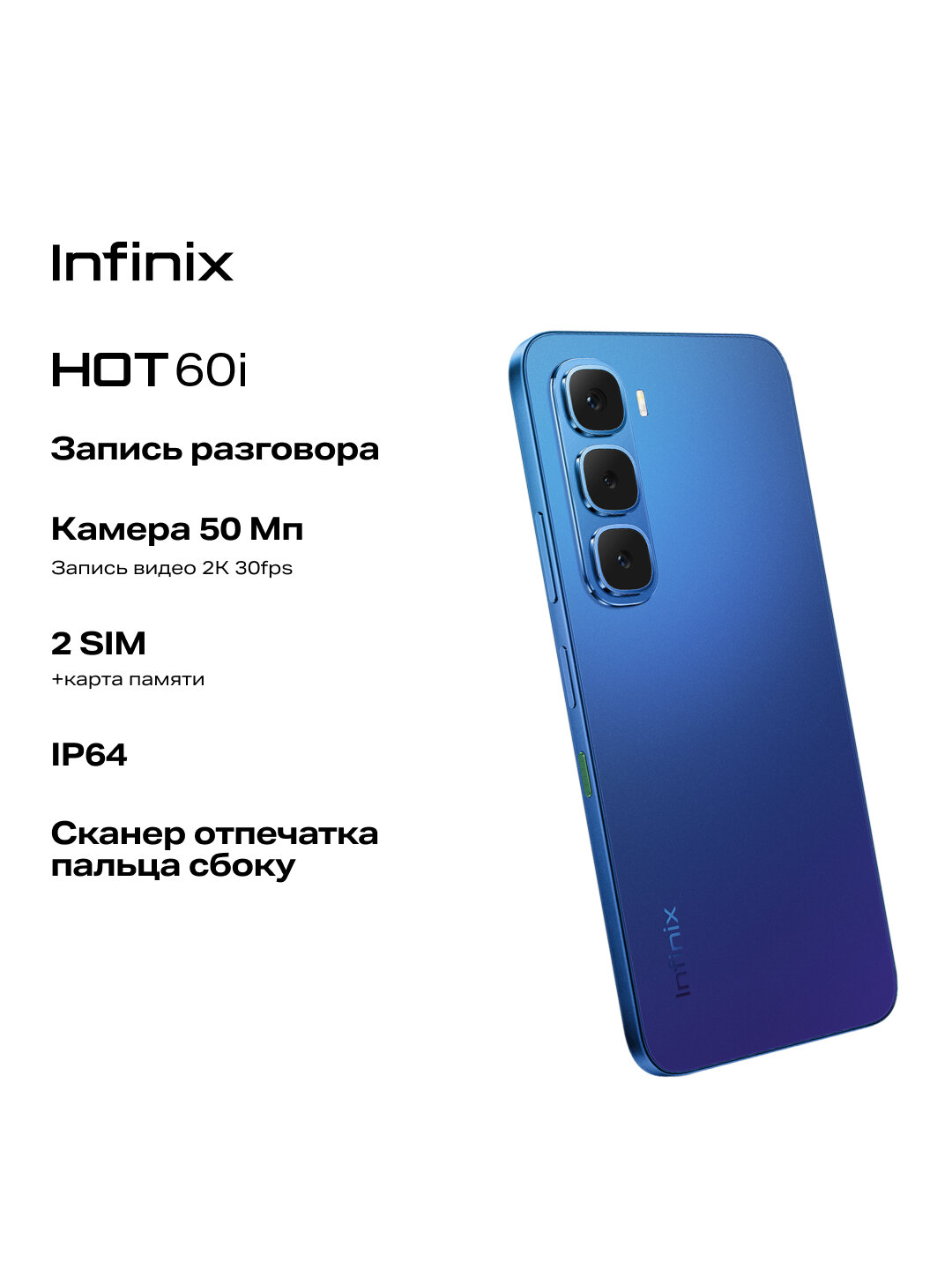 Купите Infinix HOT 60i X6728 (8/256GB, Синий) прямо сейчас и откройте для себя мир современных технологий!