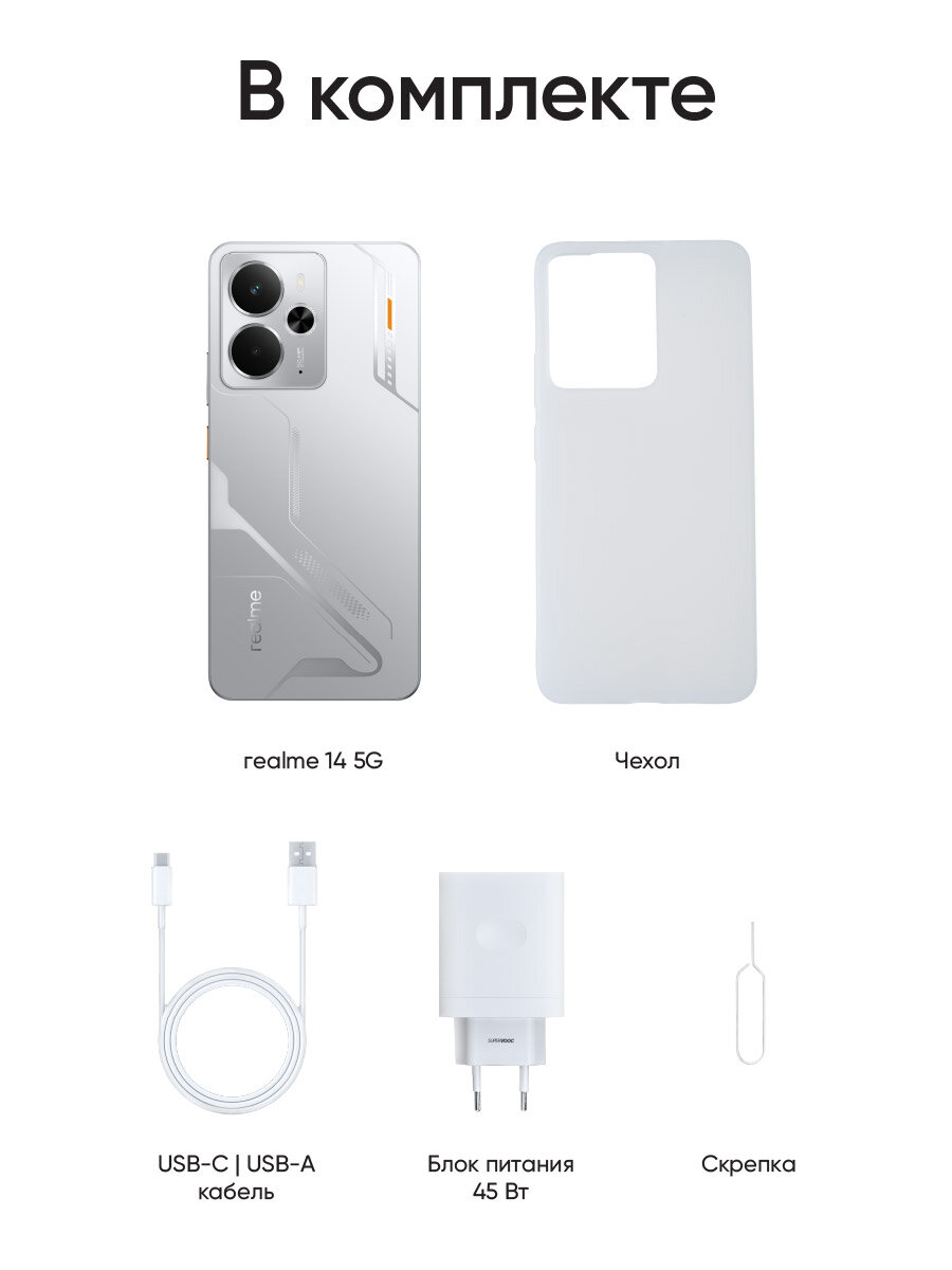 Realme 14 5G – это отличный выбор для тех, кто ищет современный, функциональный и стильный смартфон с поддержкой 5G. Наслаждайтесь высокой скоростью, превосходной производительностью и широким набором функций с Realme 14 5G!