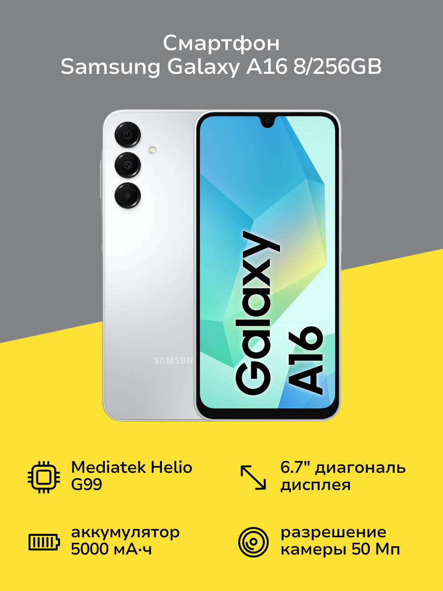 Не упустите возможность стать обладателем Samsung Galaxy A16 в серебристом цвете. Закажите его прямо сейчас и откройте для себя мир новых возможностей!