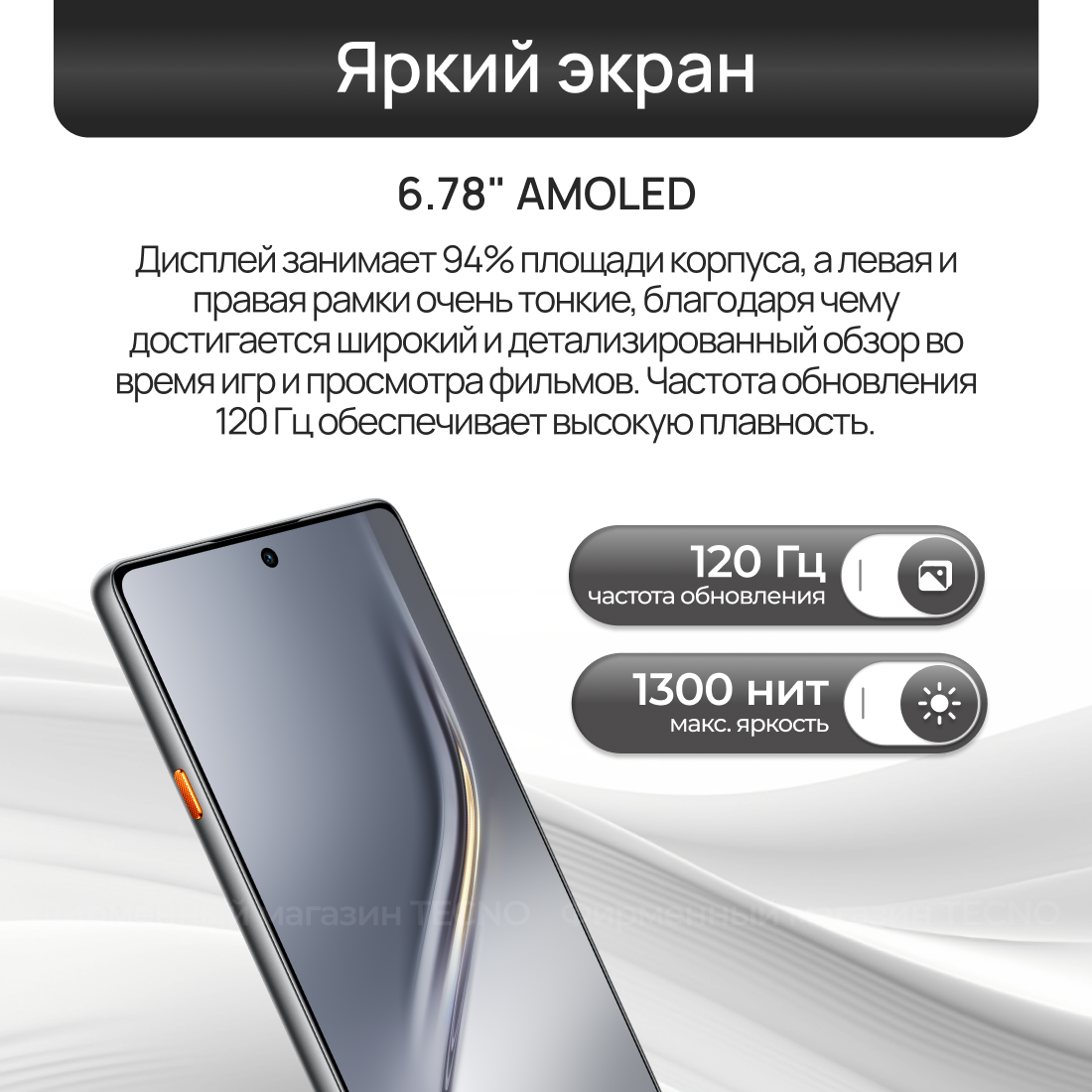 Погрузитесь в мир развлечений с большим и ярким экраном TECNO Camon 40. Наслаждайтесь просмотром фильмов, играйте в любимые игры и общайтесь в социальных сетях с максимальным комфортом. Яркие цвета и высокая детализация изображения сделают ваш опыт незабываемым.