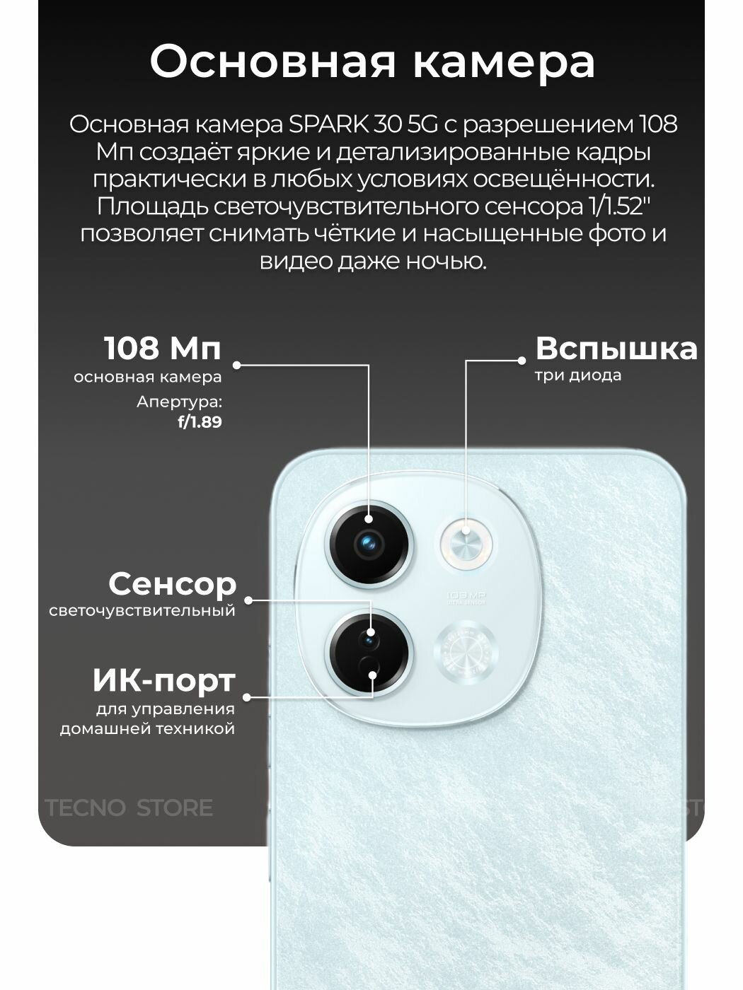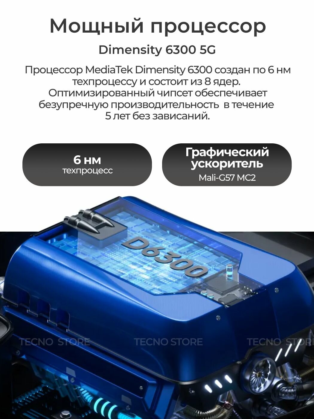 Смартфон TECNO Spark 30 5G – это идеальное сочетание стиля, производительности и доступной цены. Это отличный выбор для тех, кто ищет надежное и современное устройство, способное удовлетворить все потребности современного пользователя. Закажите свой TECNO Spark 30 5G прямо сейчас и откройте для себя мир безграничных возможностей!