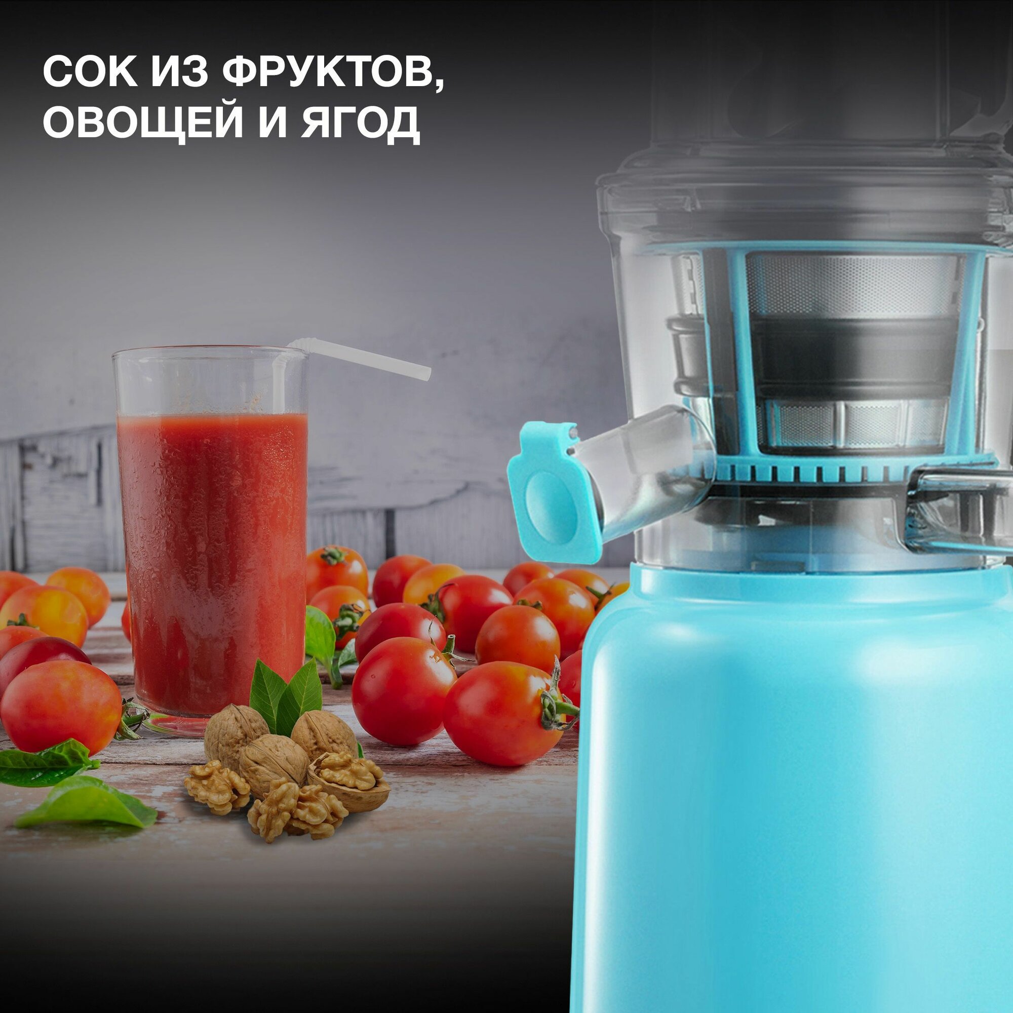 С этой соковыжималкой вы сможете разнообразить свой рацион и укрепить здоровье всей семьи. Приготовьте свежевыжатый сок из яблок, моркови, апельсинов, сельдерея, шпината и множества других ингредиентов. Экспериментируйте с рецептами и создавайте свои собственные уникальные сочетания вкусов!