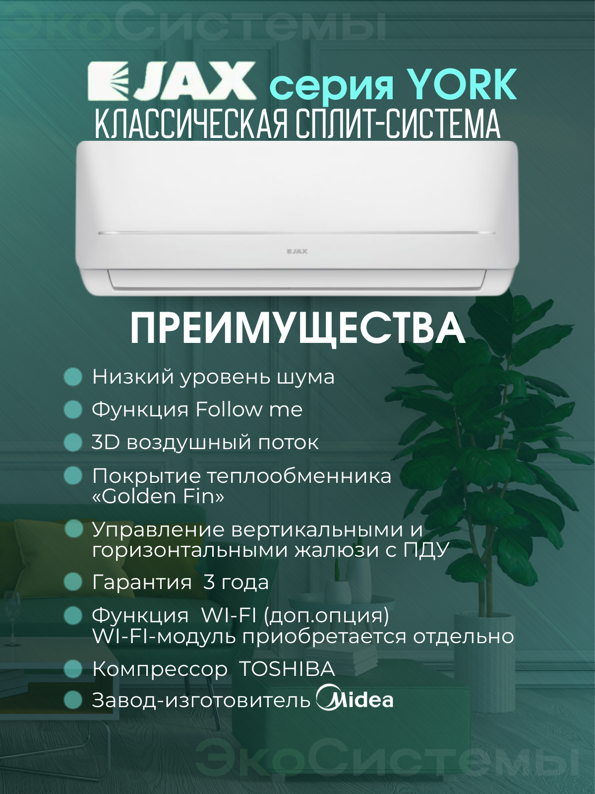Закажите сплит-систему JAX ACE-10HE (York/Midea) прямо сейчас и ощутите все преимущества современного кондиционирования!