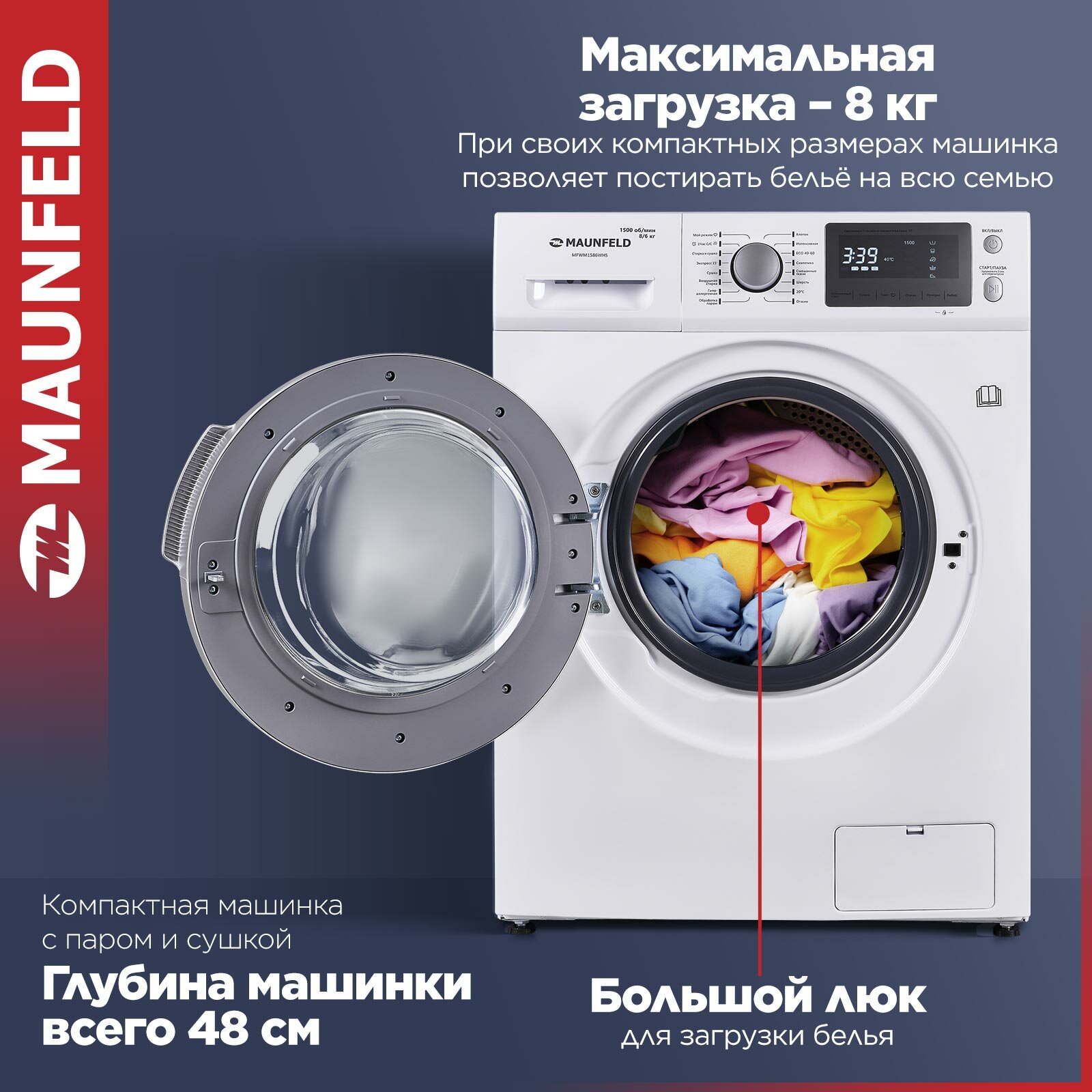 Ищете идеальное решение для стирки и сушки белья, которое сэкономит место в вашей квартире и время? Представляем стиральную машину-автомат Maunfeld MFWM1586WHS с функцией сушки, инверторным двигателем и обработкой паром! Это современное устройство, сочетающее в себе передовые технологии и элегантный дизайн.