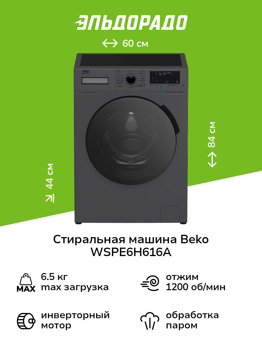 Ищете надежную и функциональную стиральную машину для дома? Beko WSPE 6H616A – это отличный выбор, сочетающий в себе современные технологии и простоту использования. Она станет незаменимым помощником в уходе за вашей одеждой, обеспечивая эффективную и бережную стирку.