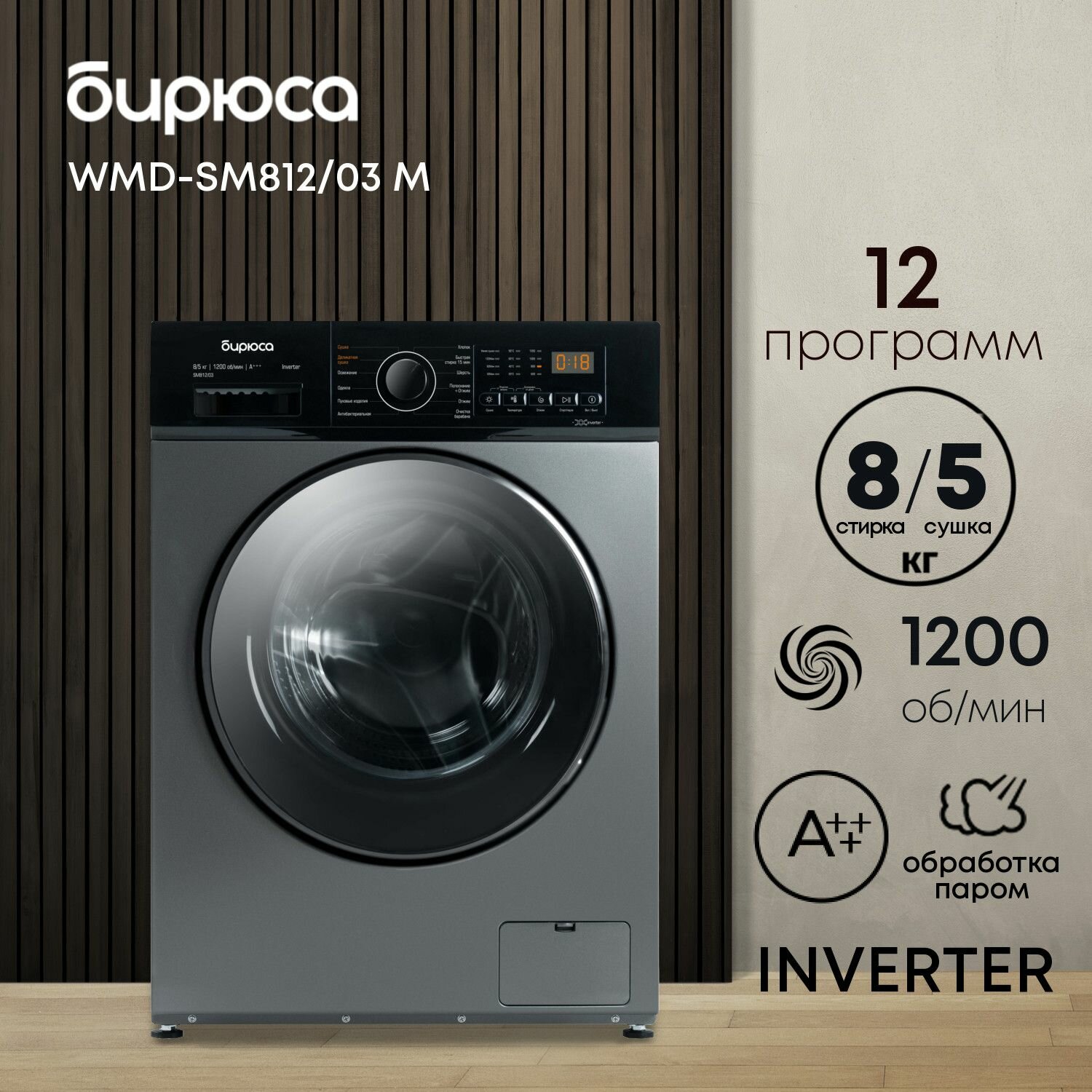 Ищете надежную и функциональную стиральную машину с сушкой, которая идеально впишется в современный дом? Biryusa WMD SM81203 M - это ваш выбор! Эта стиральная машина сочетает в себе передовые технологии и элегантный дизайн, предлагая оптимальное решение для стирки и сушки белья.