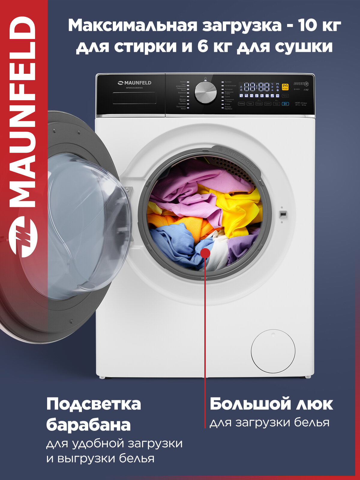 Выберите стиральную машину с сушкой и инвертором Maunfeld и наслаждайтесь безупречным результатом стирки и сушки каждый раз!
