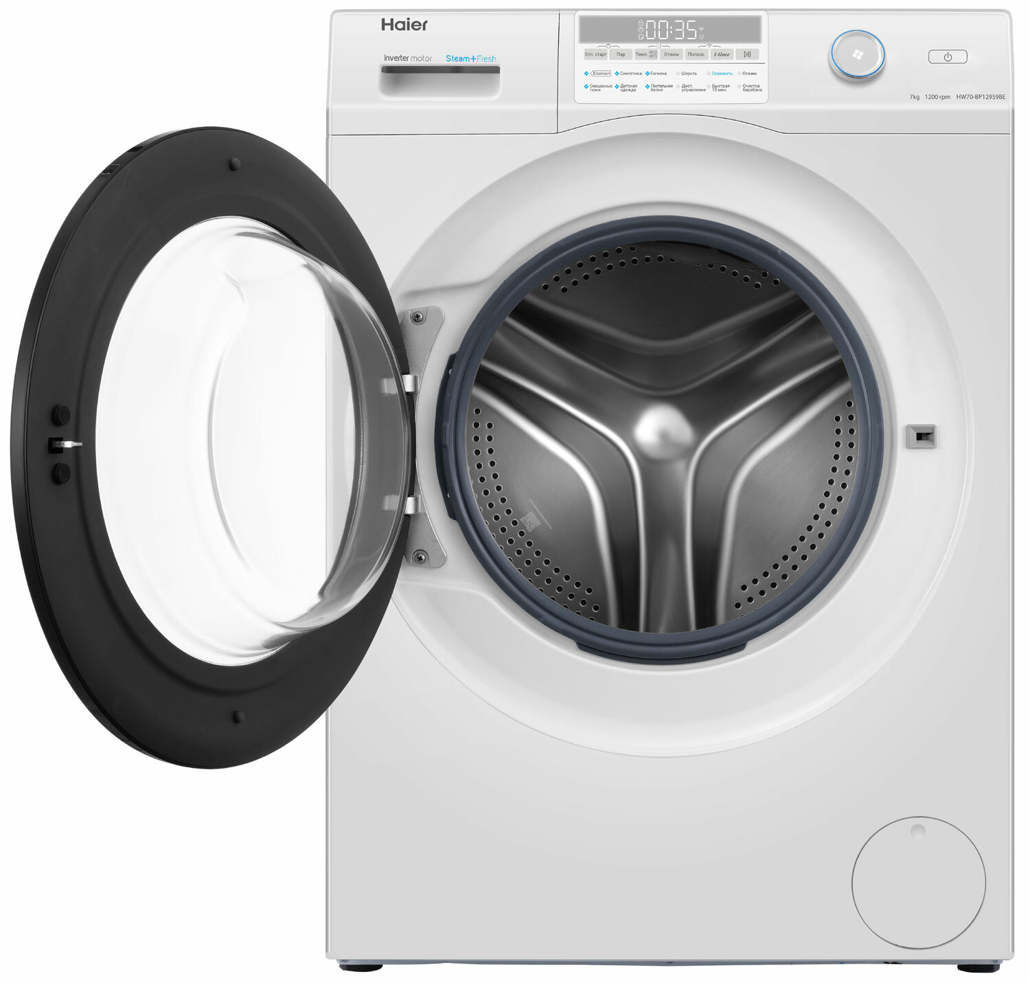 Фронтальная загрузка обеспечивает удобный доступ к барабану и позволяет устанавливать машину под столешницу, экономя пространство в ванной комнате. Современный дизайн и интуитивно понятное управление делают стиральную машину Haier HW70-BP12959BE стильным и функциональным дополнением вашего дома.