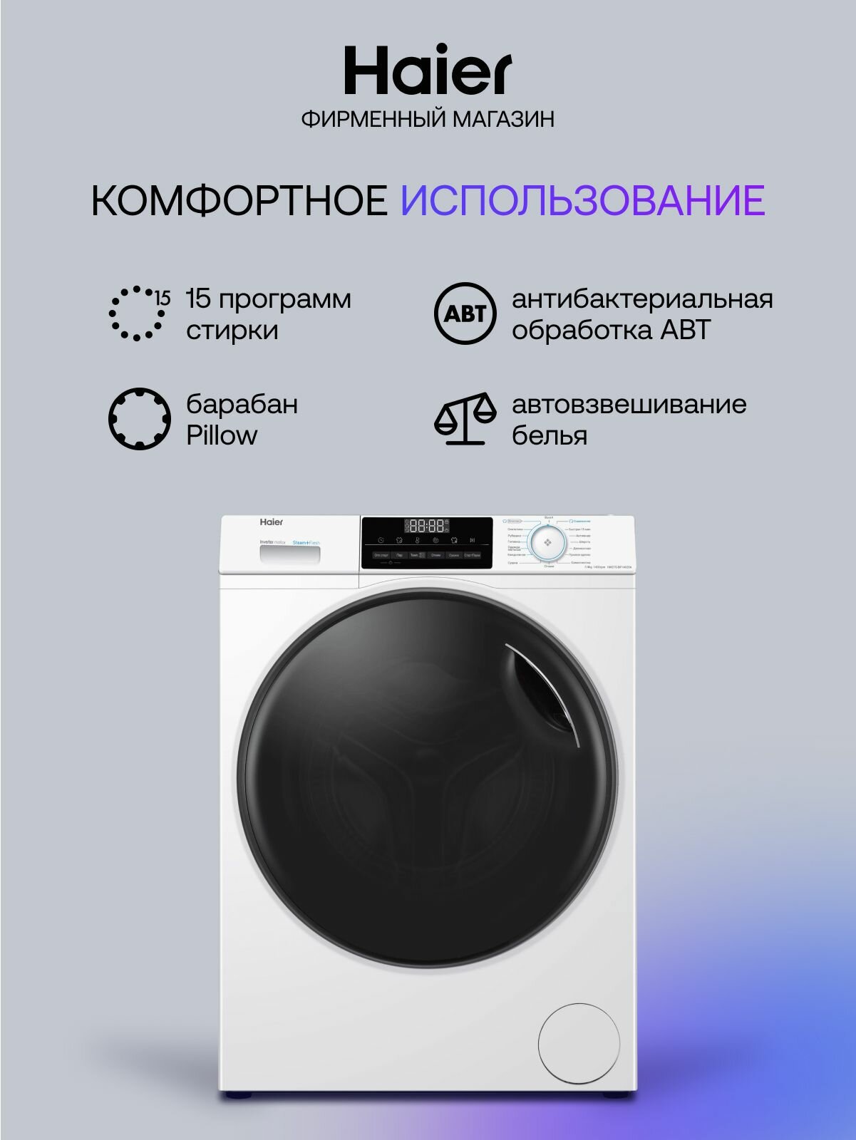 Эта стиральная машина отличается не только функциональностью, но и стильным дизайном, который гармонично впишется в интерьер вашей ванной комнаты. Простое и интуитивно понятное управление сделает процесс стирки максимально комфортным и приятным.