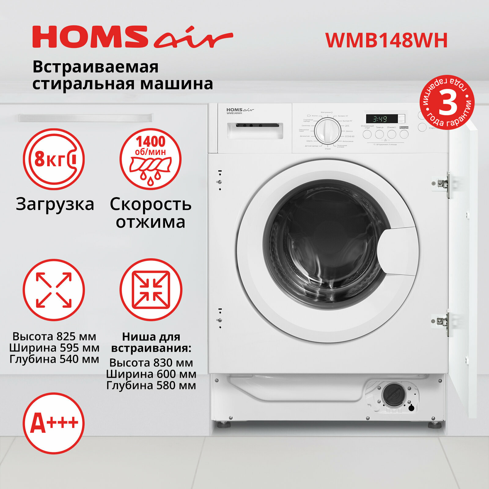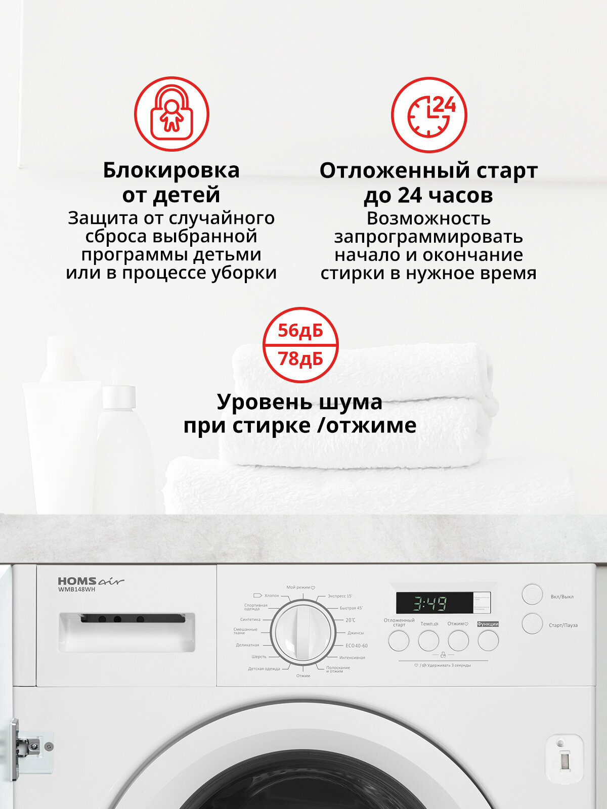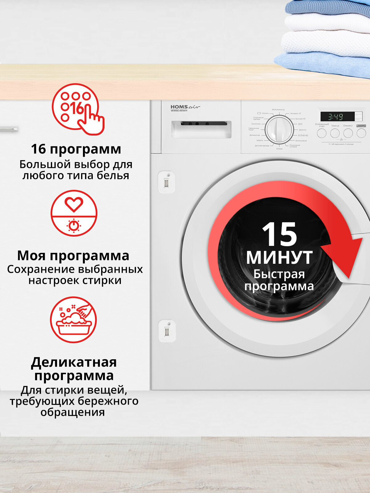 Забудьте о стирке как о рутинной обязанности! С Homsair WMB148WH стирка станет легкой и приятной. Оцените все преимущества встраиваемой стиральной машины и сделайте свою жизнь проще.