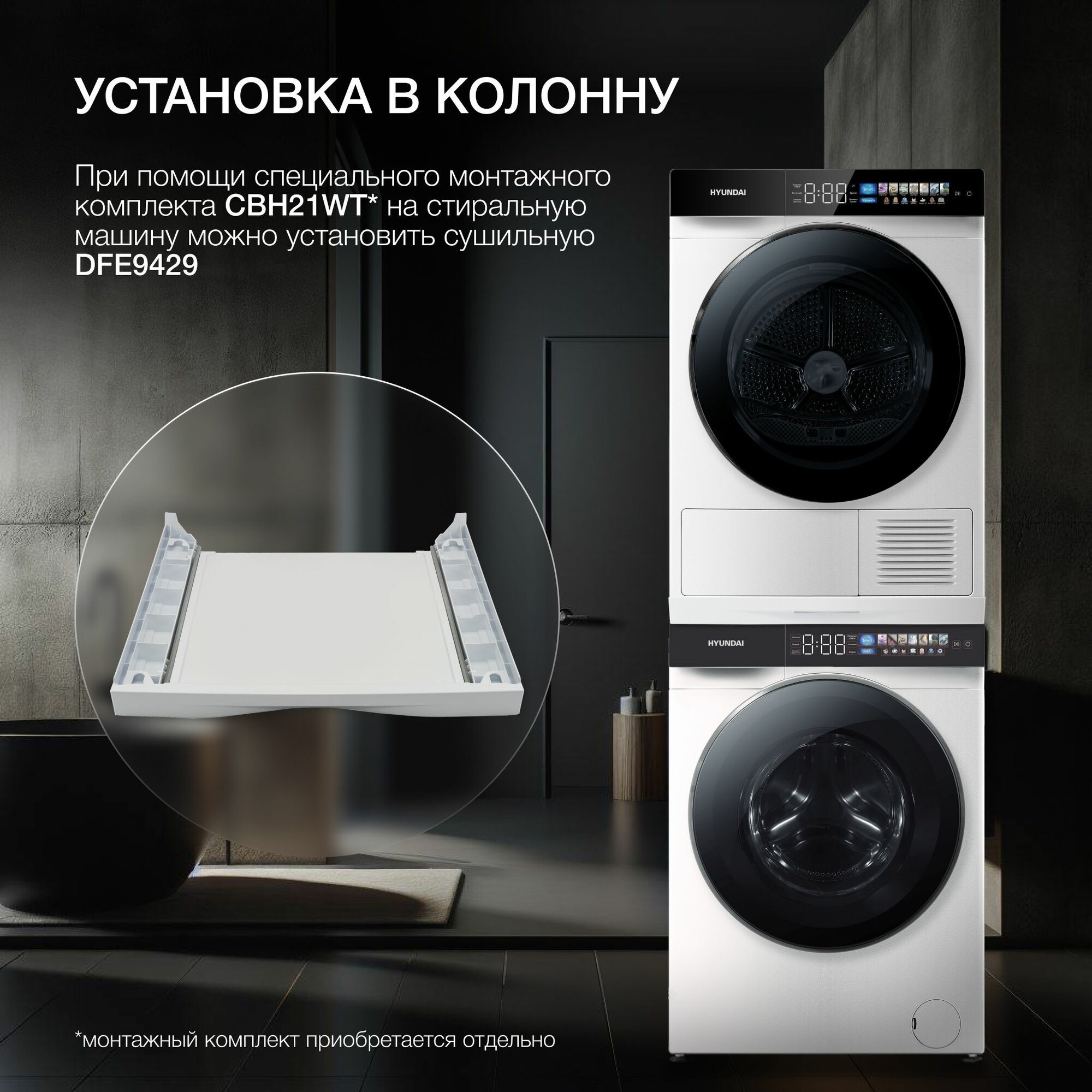 Элегантный дизайн стиральной машины Hyundai WFE9229 гармонично впишется в интерьер любой ванной комнаты. А возможность установки в колонну с сушильной машиной Hyundai DFE9429 (приобретается отдельно) позволит существенно сэкономить пространство.
