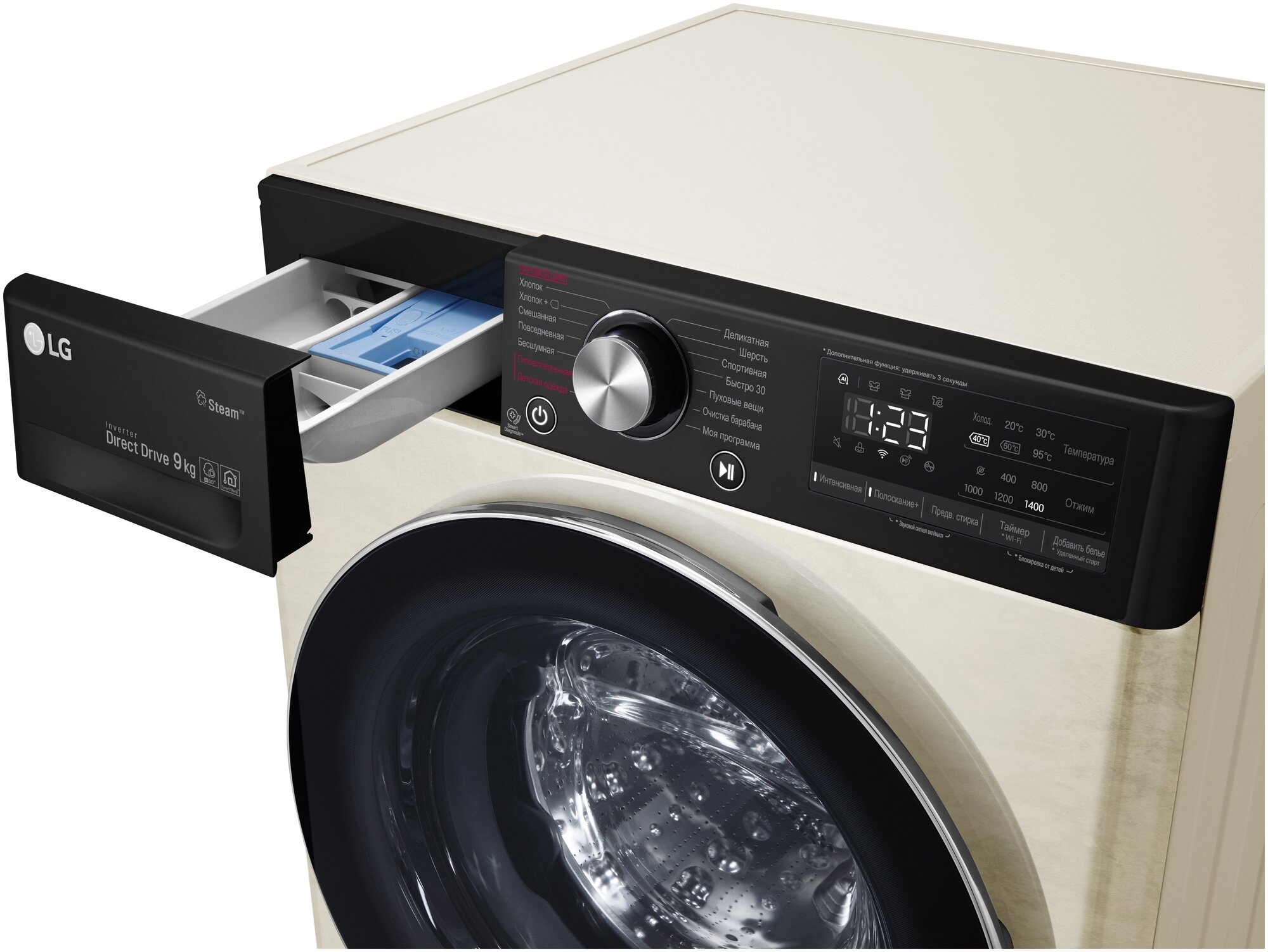 Ищете надежную и современную стиральную машину, которая позаботится о вашей одежде? Представляем стиральную машину LG AI DD F4V5VS9B бежевого цвета – воплощение инноваций и стиля в вашем доме.