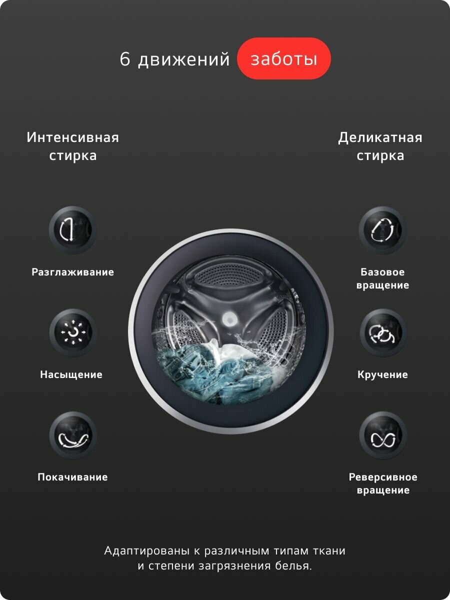 Эта стиральная машина сочетает в себе передовые технологии и удобство использования. Инверторный мотор с прямым приводом гарантирует тихую и долговечную работу, а также снижает энергопотребление, что положительно скажется на ваших счетах за электроэнергию.