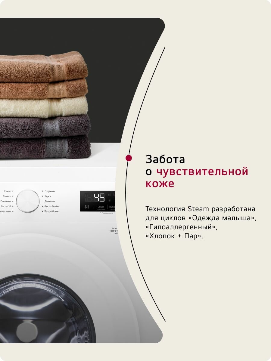 Функция пара Steam – это настоящее спасение для людей с чувствительной кожей и аллергиков. Она эффективно удаляет аллергены и бактерии, делая вашу одежду не только чистой, но и безопасной для здоровья.