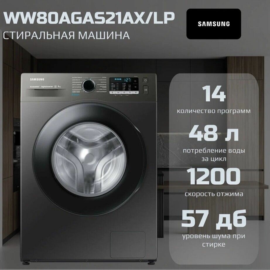 Ищете надежную и стильную стиральную машину, которая станет незаменимым помощником в вашем доме? Samsung WW80AGAS21AXLP в элегантном черном цвете - это превосходное решение для тех, кто ценит качество, функциональность и современный дизайн.