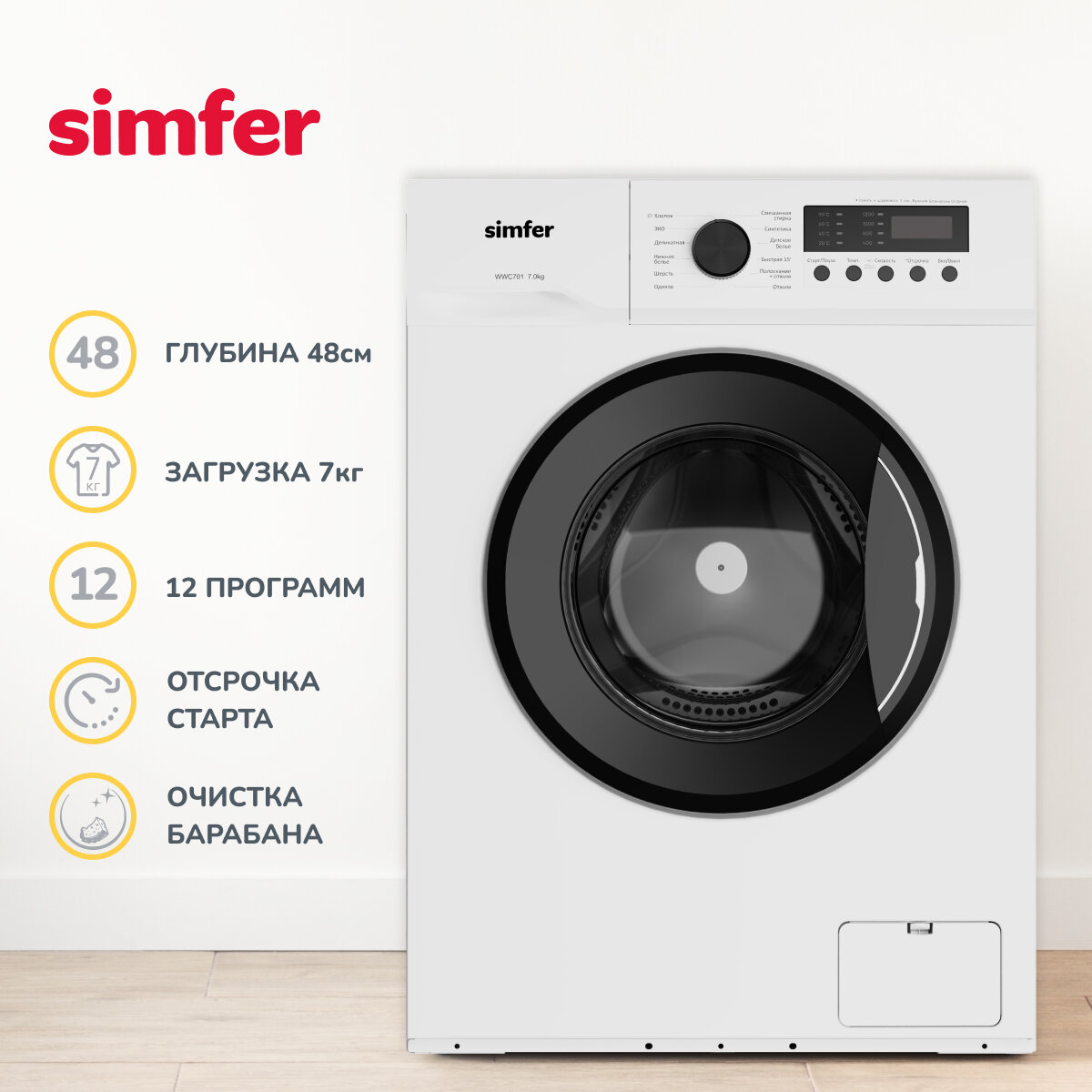 Simfer WWC701 сочетает в себе современный дизайн и функциональность. Она легко впишется в интерьер вашей ванной комнаты или кухни, а простое и интуитивно понятное управление сделает процесс стирки максимально комфортным.