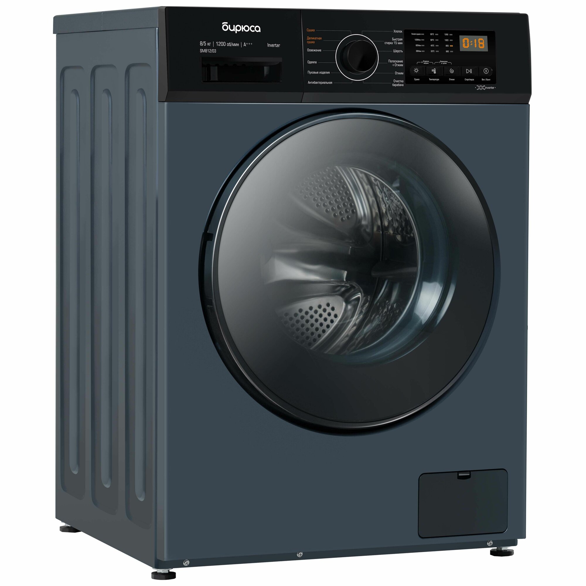 Элегантный перламутровый синий цвет корпуса добавит изысканности вашей ванной комнате или кухне. Интуитивно понятное управление и широкий выбор программ позволяют легко настроить процесс стирки и сушки под любые ваши потребности.