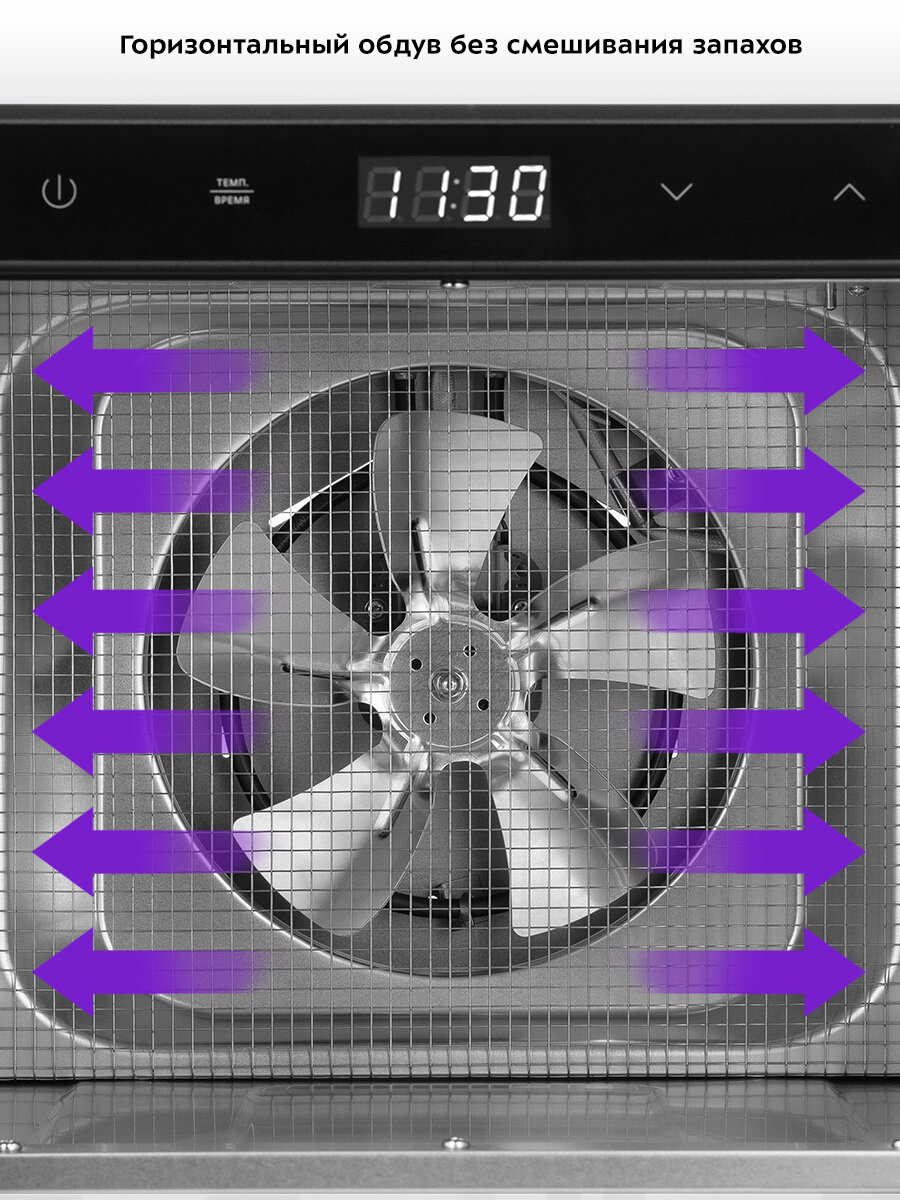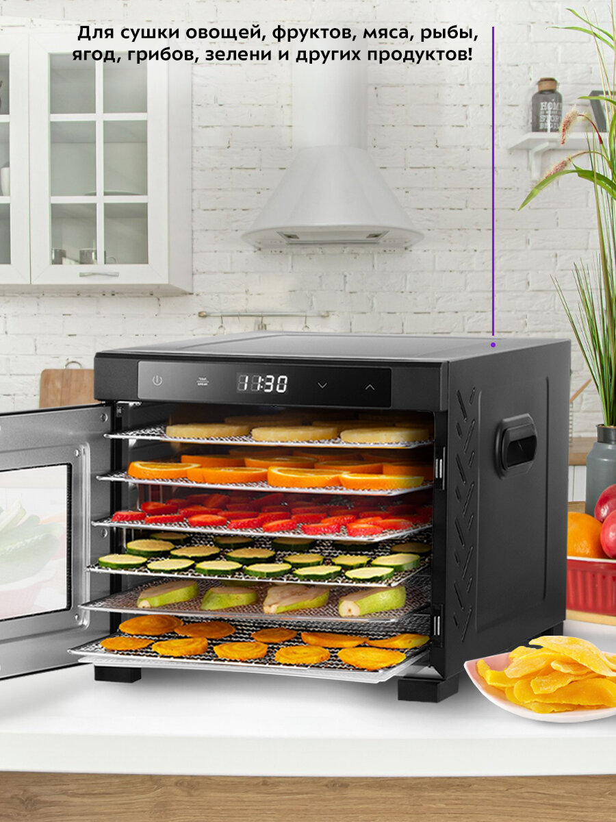 Простота использования: Сушилка проста в управлении и не требует специальных навыков. Просто разложите продукты на поддонах, установите нужную температуру и время сушки, и все готово! Наслаждайтесь процессом и вкусными результатами.