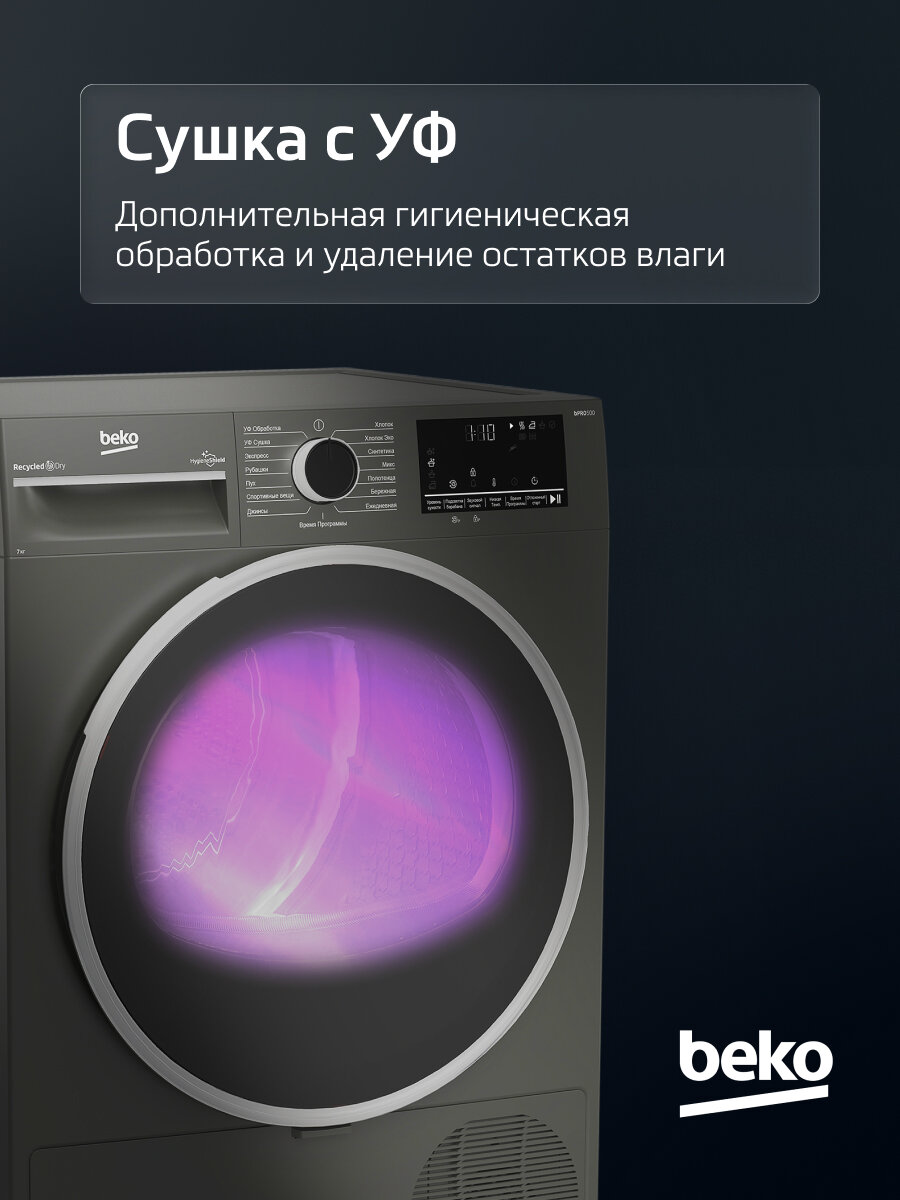 Элегантный дизайн сушильной машины Beko B3T47239A прекрасно впишется в интерьер вашей ванной комнаты или прачечной. Темно-серый цвет корпуса придает ей современный и стильный вид.