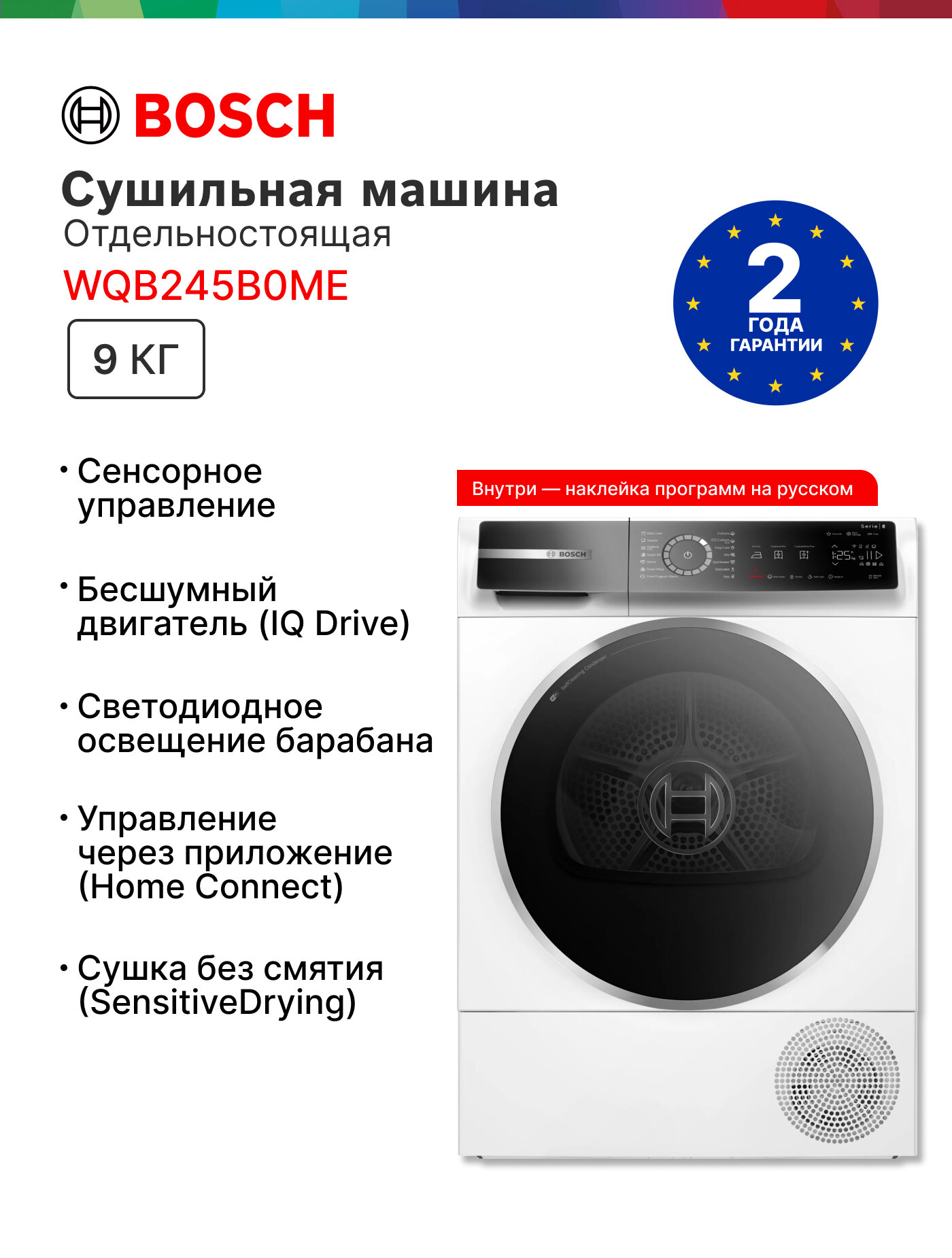 Ищете идеальное решение для сушки белья, которое сочетает в себе передовые технологии, бережный уход за тканями и высокую энергоэффективность? Представляем вам сушильную машину Bosch WQB245B0ME! Этот аппарат станет незаменимым помощником в вашем доме, освобождая вас от хлопот с развешиванием и сушкой белья.