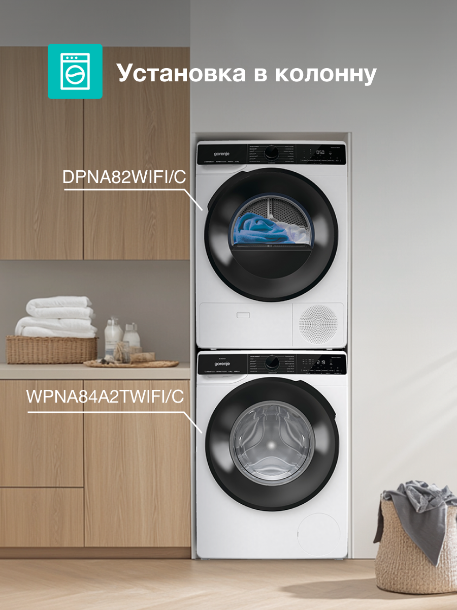 Инвестируйте в комфорт и удобство с сушильной машиной Gorenje DPNA82WIFIC! Наслаждайтесь идеально высушенным бельем каждый день!