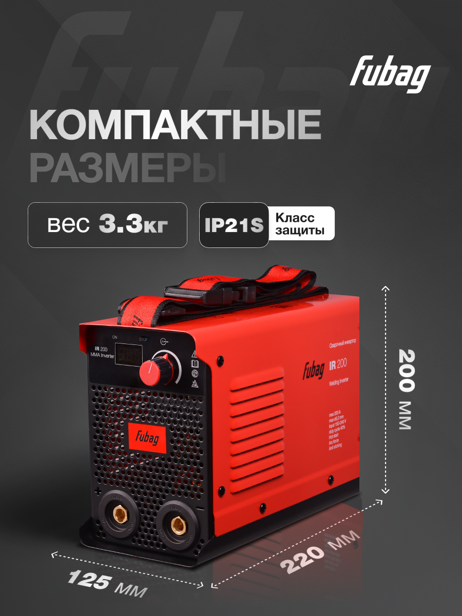 Небольшой вес и габариты делают Fubag IR 200 удобным для транспортировки и хранения. Вы сможете легко перемещать аппарат на место проведения работ и не беспокоиться о том, где его хранить после использования. Интуитивно понятное управление позволяет быстро настроить необходимые параметры сварки, что экономит ваше время и упрощает работу.