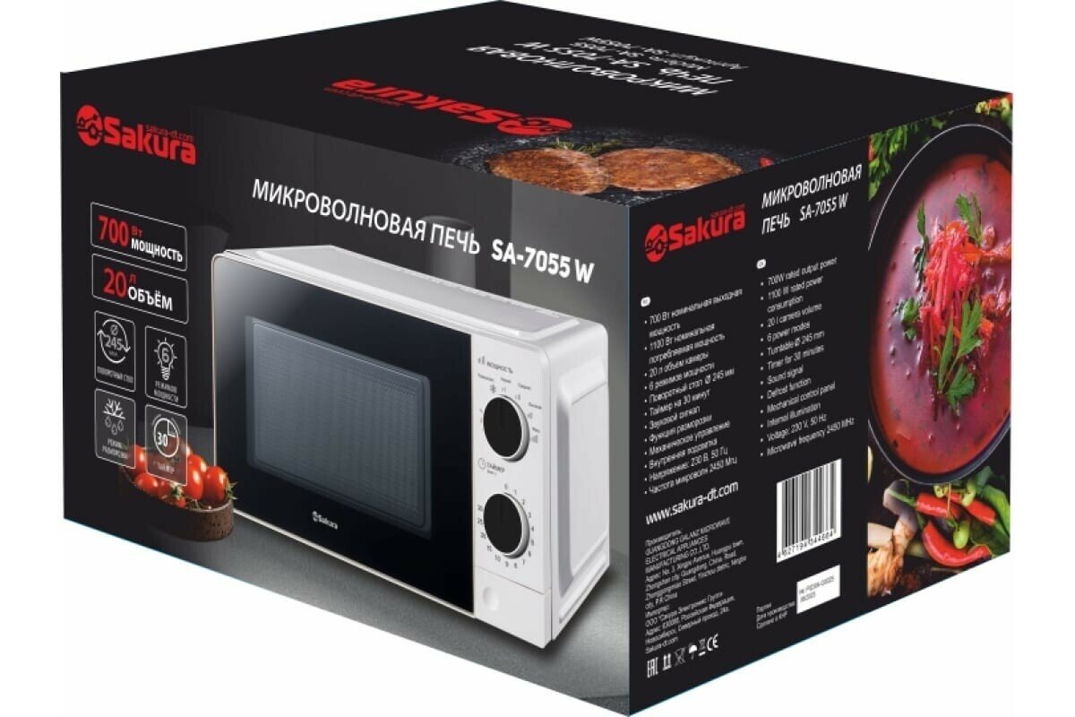 Микроволновая печь Sakura SA-7055W – это оптимальное сочетание цены и качества. Она прослужит вам долгие годы, радуя своей надежностью и функциональностью. Позвольте себе немного больше комфорта и удобства на кухне!