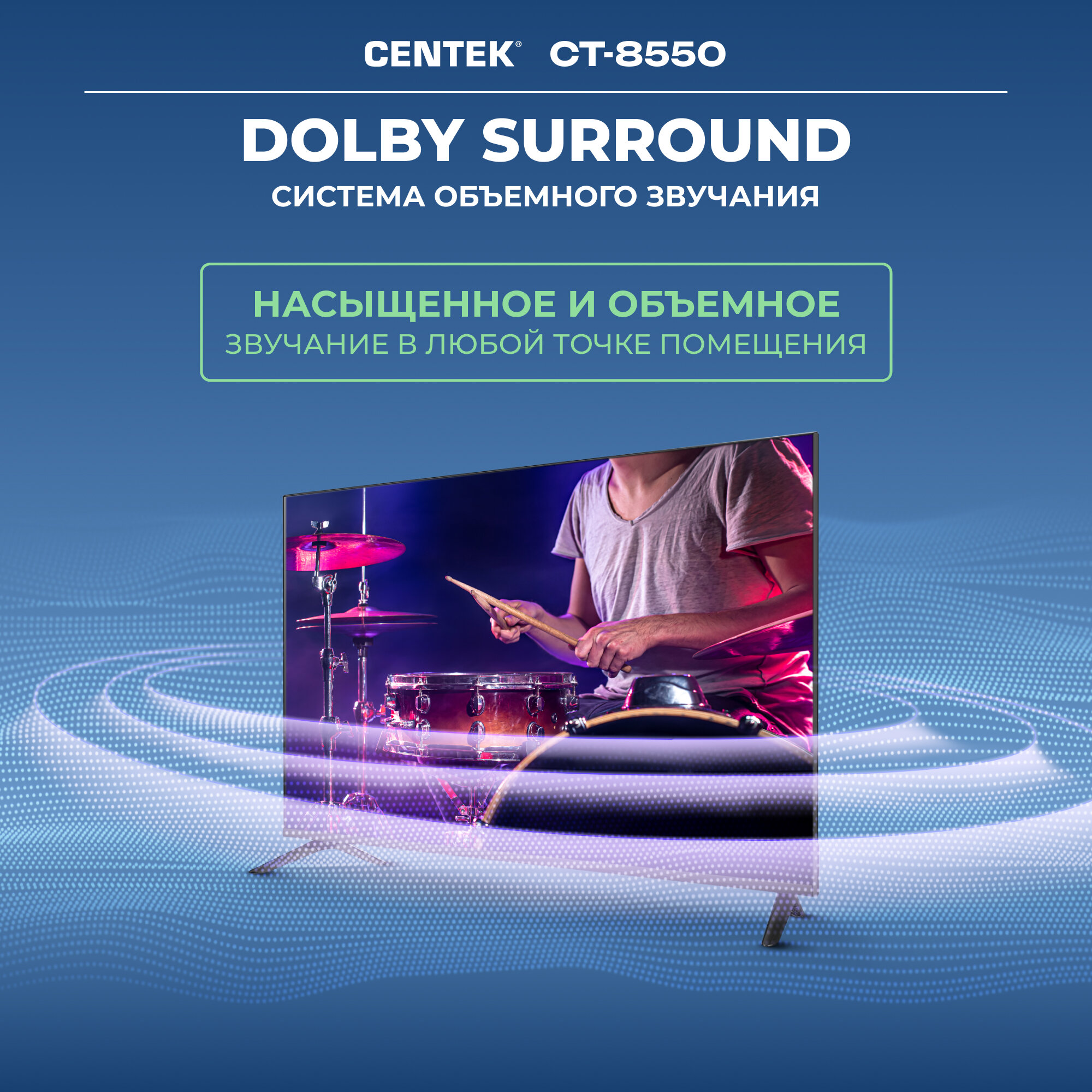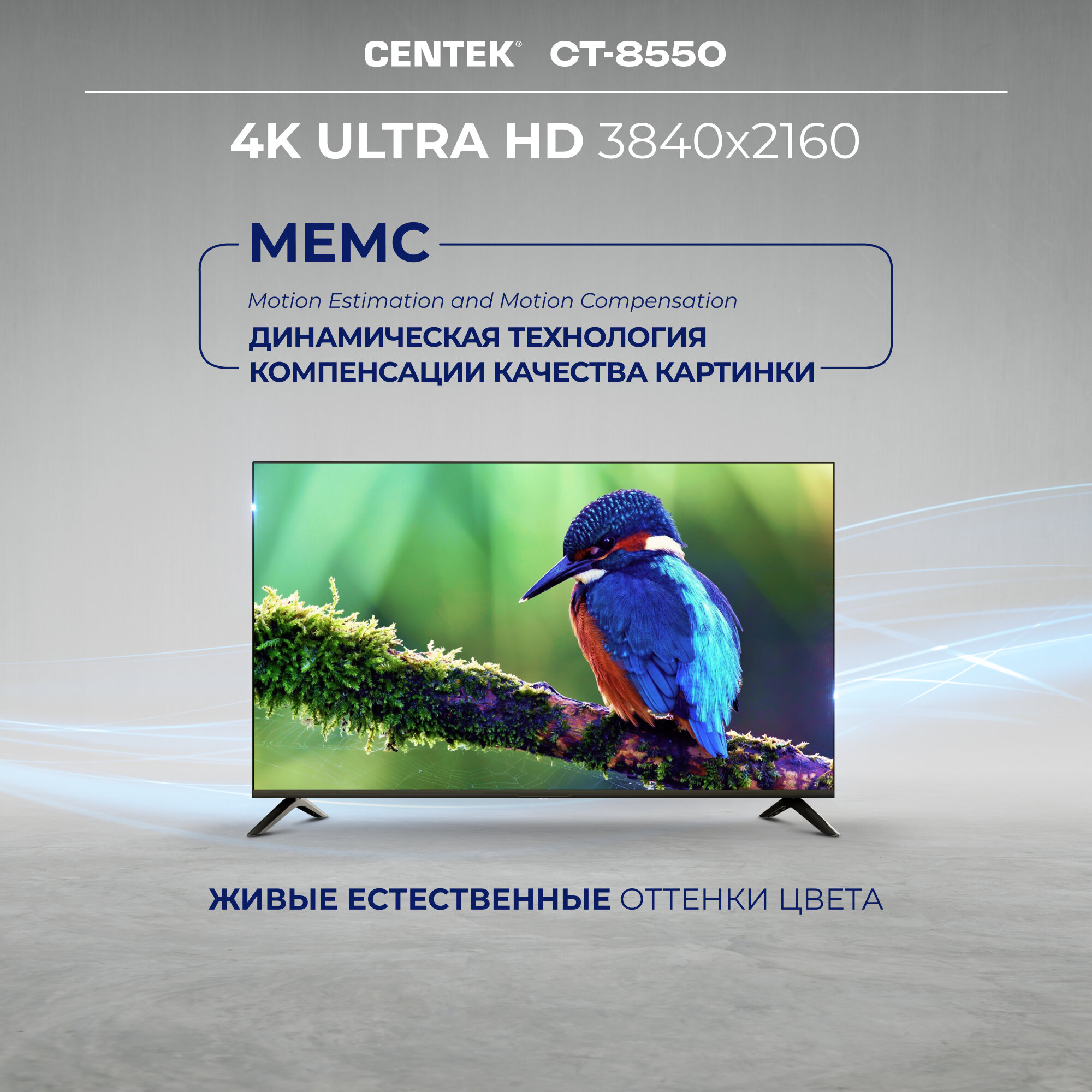 Современный дизайн телевизора Centek CT-8550 Smart легко впишется в любой интерьер. Тонкие рамки вокруг экрана позволяют полностью погрузиться в происходящее на экране, не отвлекаясь на посторонние детали. Простота установки и подключения позволит вам быстро начать наслаждаться просмотром любимых фильмов и передач.