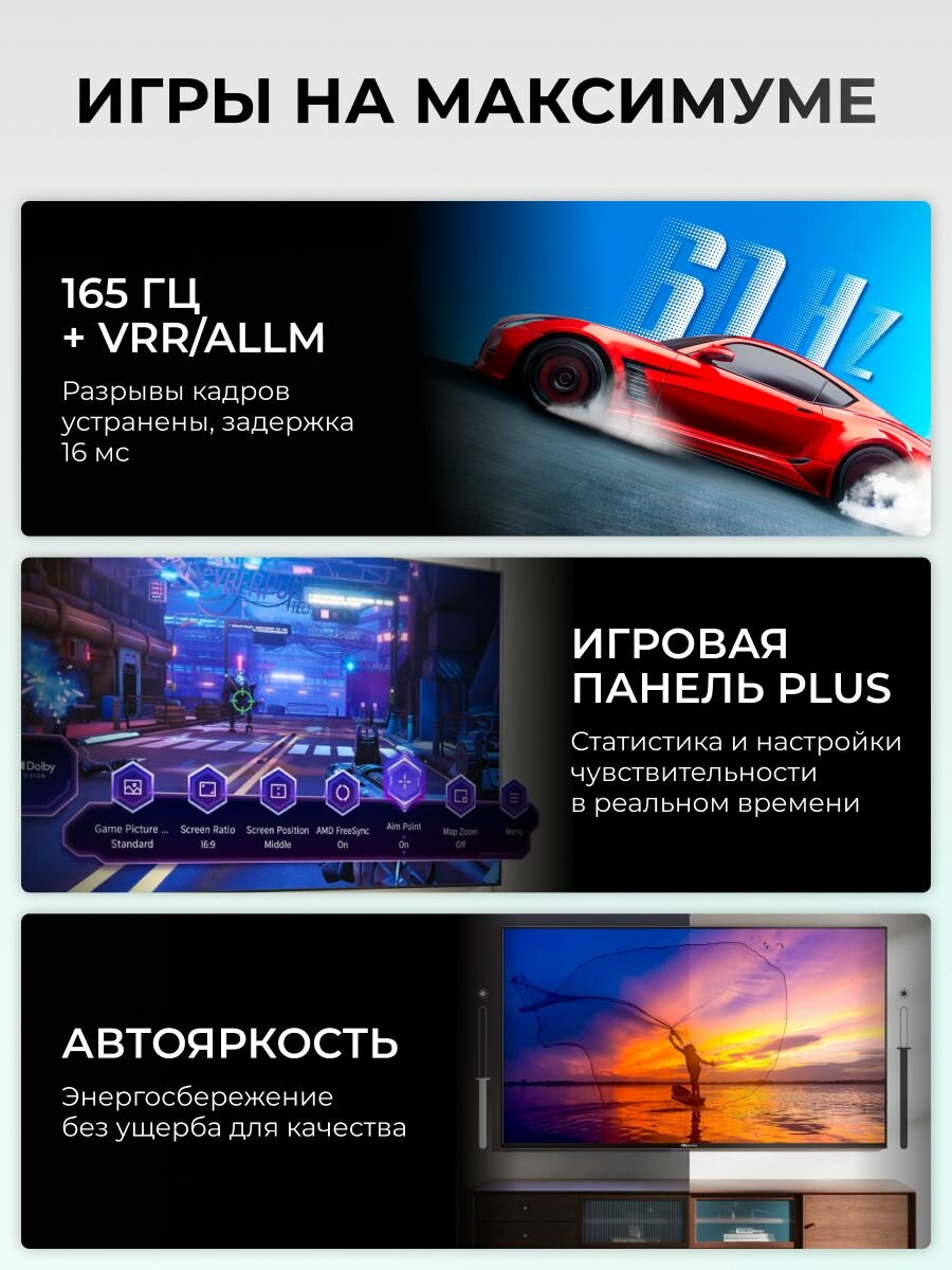 Телевизор Hisense 43E77Q предлагает не только потрясающее изображение, но и великолепный звук. Почувствуйте себя в центре событий благодаря захватывающему звучанию, которое дополнит визуальное восприятие и сделает просмотр еще более увлекательным.