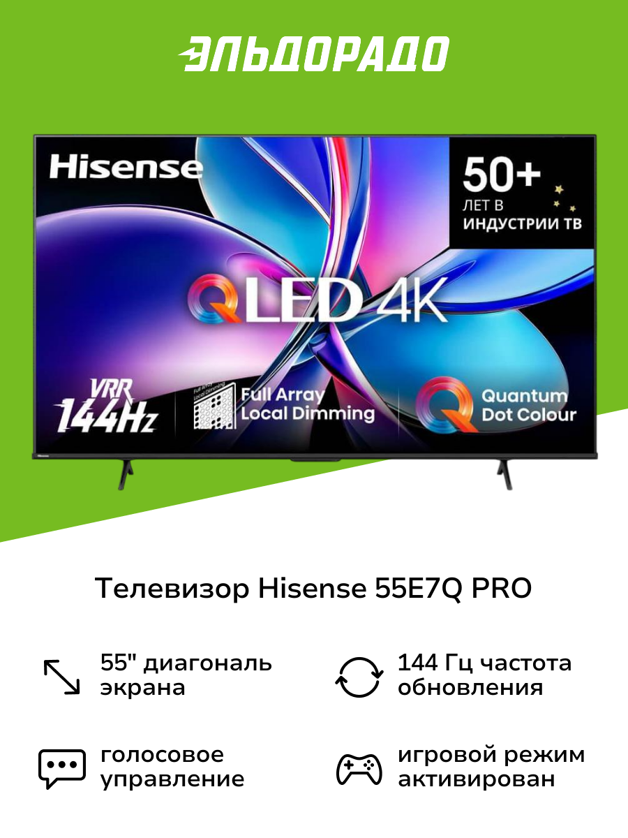 Не упустите возможность улучшить свой домашний кинотеатр с телевизором Hisense 55E7Q PRO. Закажите его прямо сейчас и наслаждайтесь потрясающим качеством изображения и звука, которые превзойдут все ваши ожидания! Превратите свою гостиную в настоящий кинозал и позвольте себе погрузиться в мир захватывающих развлечений с Hisense.
