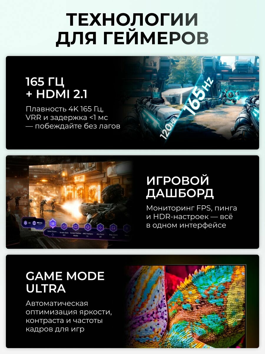 Игровой режим, реализованный в Hisense 55U7Q Pro, позволит вам наслаждаться игровым процессом без задержек и размытия. Благодаря поддержке HDMI 2.1 и высокой частоте обновления экрана, вы получите максимально плавное и отзывчивое управление, что особенно важно для динамичных игр.