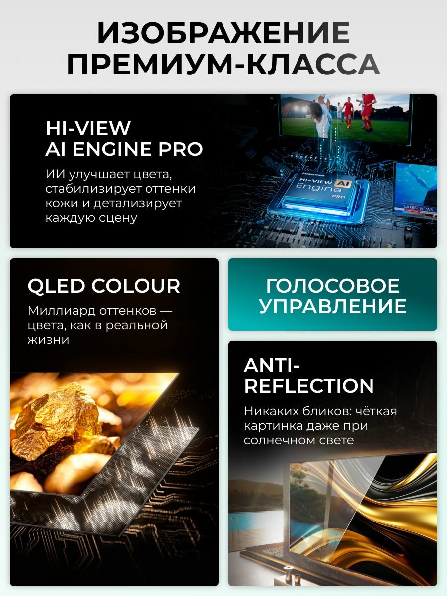 Погрузитесь в мир невероятно реалистичного изображения с телевизором Hisense 55U7Q Pro! Этот современный 4K UHD Smart TV откроет для вас новые грани развлечений, обеспечивая кристально чистое изображение, насыщенные цвета и потрясающую детализацию.