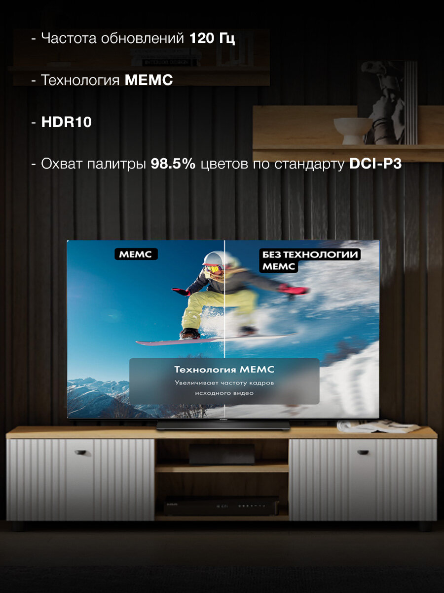 Благодаря передовым технологиям, изображение на экране оживает, поражая своей четкостью, глубиной цвета и реалистичностью. Наслаждайтесь любимыми фильмами, сериалами и играми в формате, который превзойдет все ваши ожидания. Телевизор Hyundai H-LED55OBU7700 создает эффект полного погружения, позволяя вам забыть обо всем и целиком отдаться происходящему на экране.